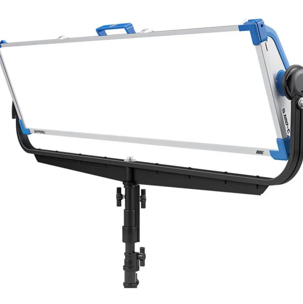 ARRI continues to literally broaden their LED line with the introduction of the wide-format SkyPanel S120-C LED Softlight. Supported by an aluminum yoke, the panel surface area measures 50.8 x 11.8″ and employs interchangeable thermoplastic diffusers that range from Lite to Heavy to soften the light and wrap its output around your subject. A Standard medium diffuser is included with the light. The SkyPanel outputs the approximate equivalent of a 2000W tungsten soft light while drawing a maximum of only 430W.