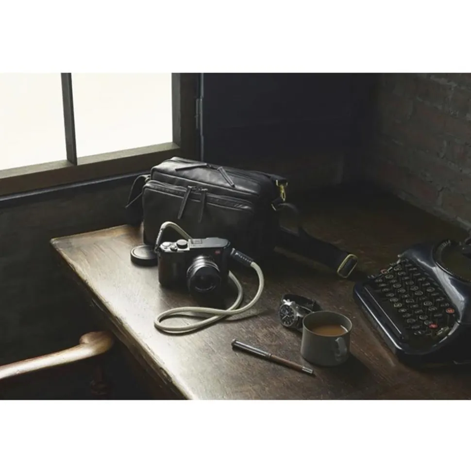 Finally, the leather of the attachment is smoother, and the camera protection flap is redesigned. The strap is available in two lengths; this is the longer option suitable for wearing diagonally.