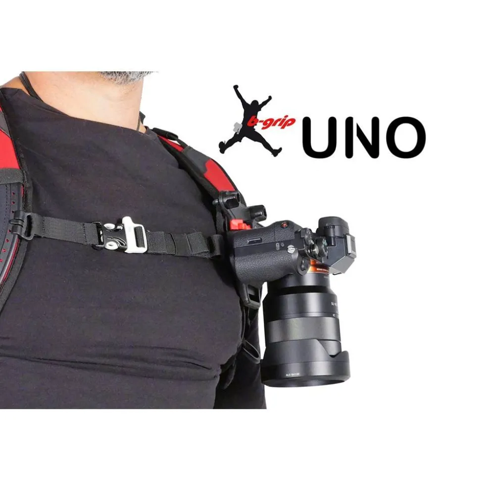 The b-grip UNO camera holster keeps your camera comfortably and securely connected to your body when you are active. It fits most backpacks, belts or bags.