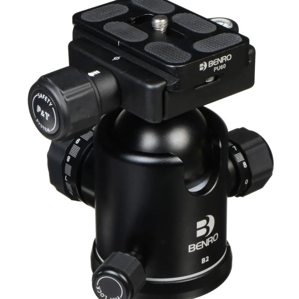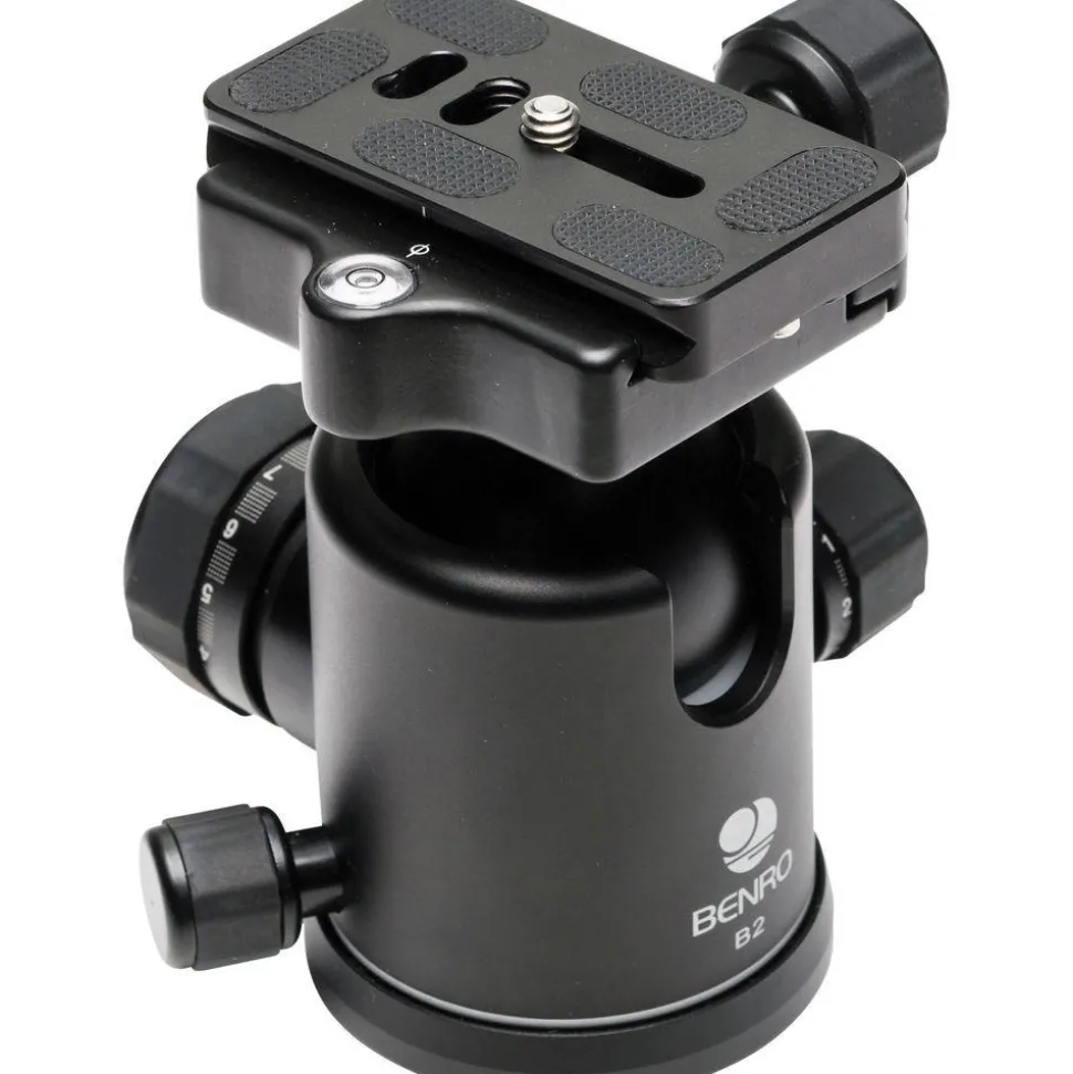 | A member in good standing of Benro ‘s new generation of B Series professional ballheads, the B2 Double Action Ballhead uses magnesium alloy components for better performance and lighter weight. The B2 has a dual action design featuring separate drag adjustment and lock knobs. It can handle weights up to 35.2 lb, and only tips the scales at 0.9 lb itself.
