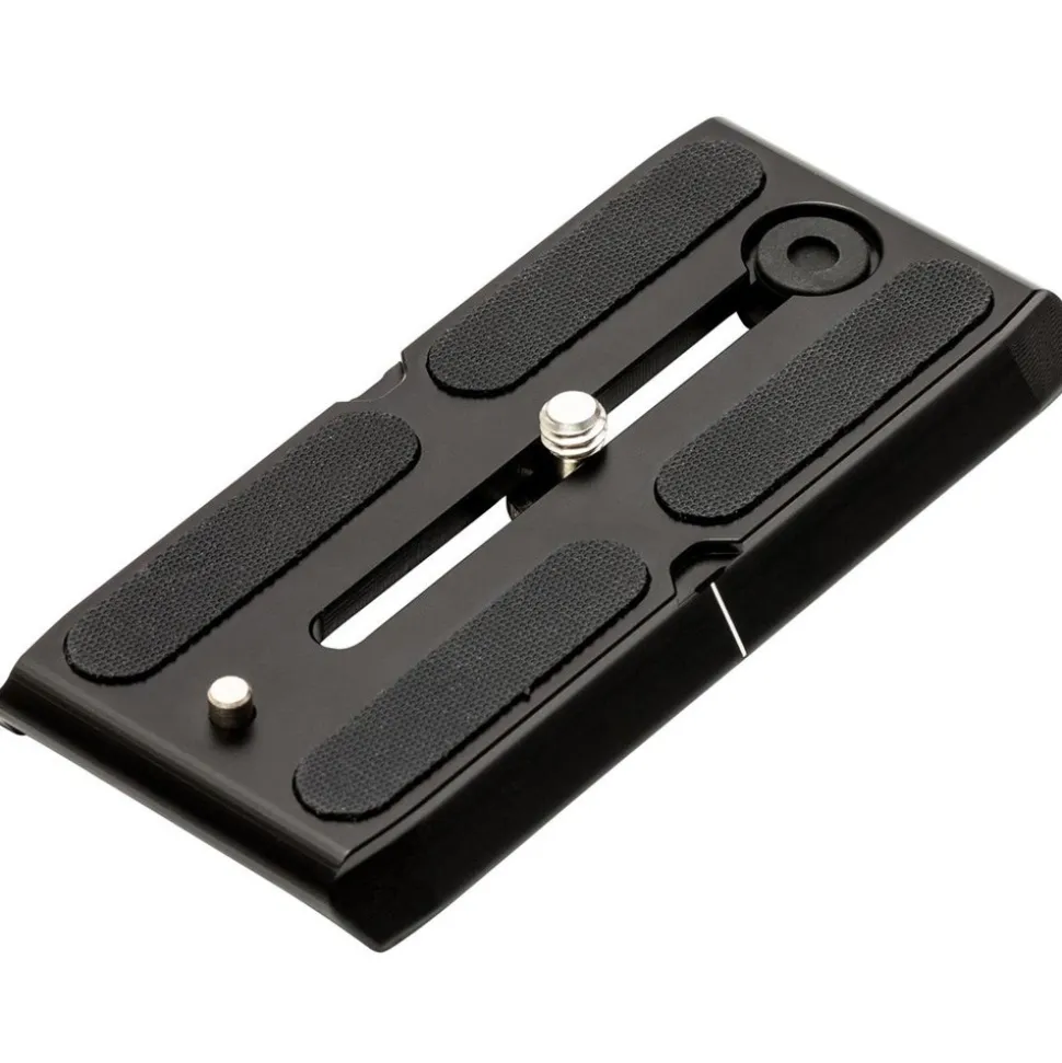 | The Benro QR4PRO is a CNC machined aluminum slide in camera plate with laser engraved markings. It fits S4 & S4PRO video heads. The registration pin is located at the front of the plate to prevent twisting with certain video cameras. Rounded edges help with faster alignment and the top of the plate features a non slip rubber grip surface. |