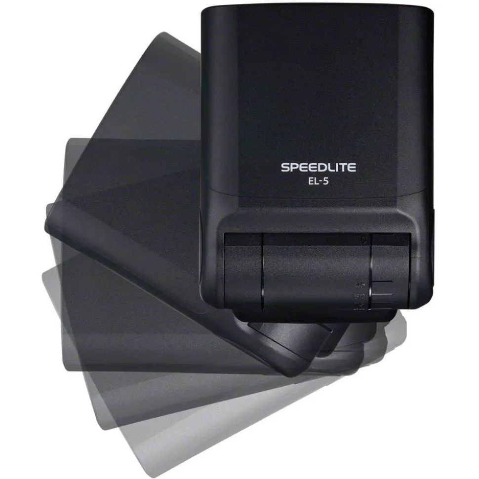 Designed for  with a Multi-Function foot interface, the Canon Speedlite EL-5 Flash provides professional lighting with bright guide number GN60 output. This allows you to illuminate distant subjects and group shots as well as control multiple speedlites from up to 30m away with the built-in transmitter.