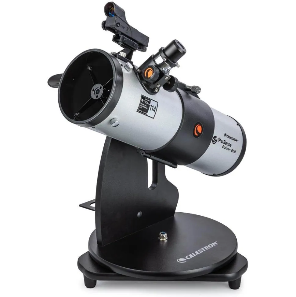 Celestron has reinvented the Tabletop Dobsonian telescope with StarSense Explorer—the first Tabletop Dobsonian that uses your smartphone to analyze the night sky and calculate its position in real-time. This 114mm aperture Celestron StarSense Explorer is ideal for beginners, thanks to the app’s user-friendly interface and detailed tutorials. It’s like having your own personal tour guide of the night sky.