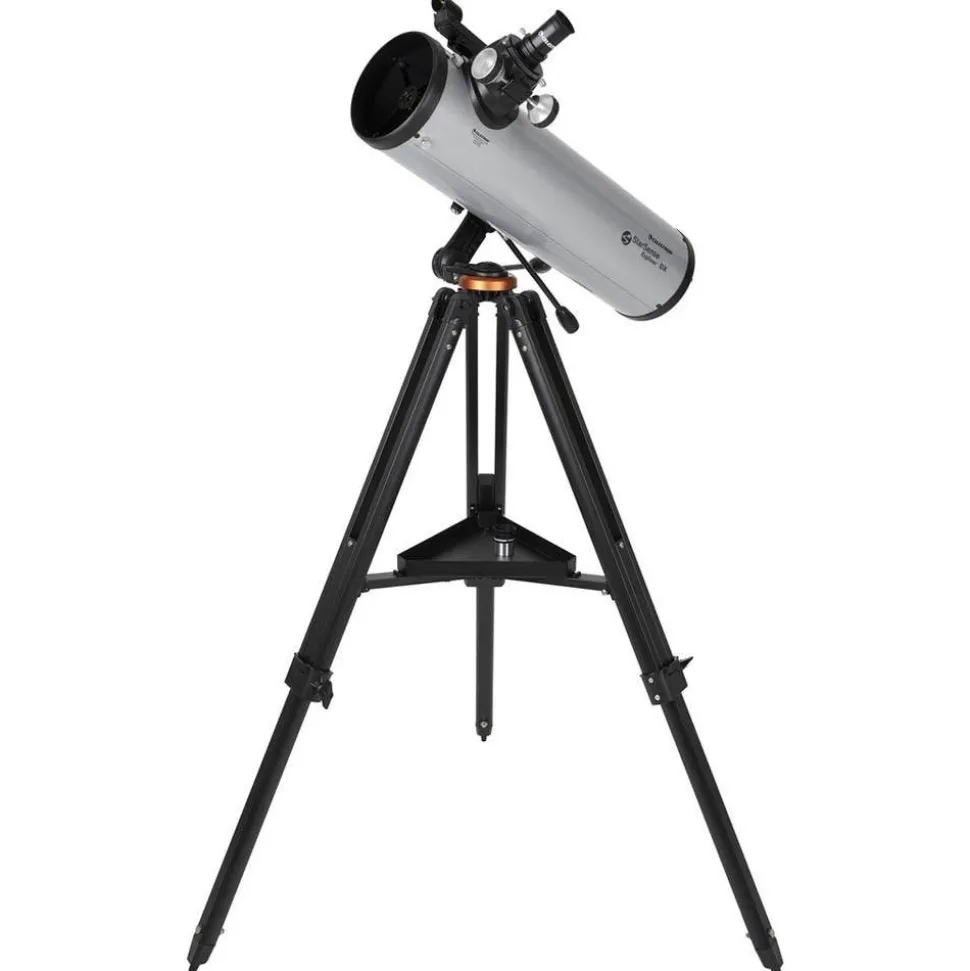 With a large 130mm (5”) objective lens, this telescope has enough light gathering ability to bring out impressive detail in celestial objects. You can expect sharp, bright views of Jupiter’s four Galilean moons, its cloud bands and Great Red Spot, the rings of Saturn, the trapezium in the Orion Nebula, and beautiful Pleaides Open Star Cluster. Highly reflective coatings on both the primary and secondary mirror enhance the views even more.
