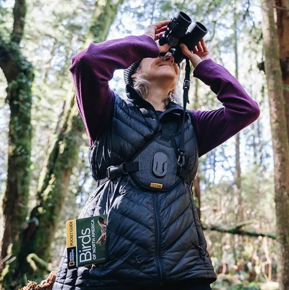 The Skout’s key feature is its fixed-position carrying system. Our patented Twist & Lock mount secures your camera or binoculars, or our new Flytdeck (Hardware depending) to your chest. Skout offers great stability and weight distribution while keeping your optics accessible.