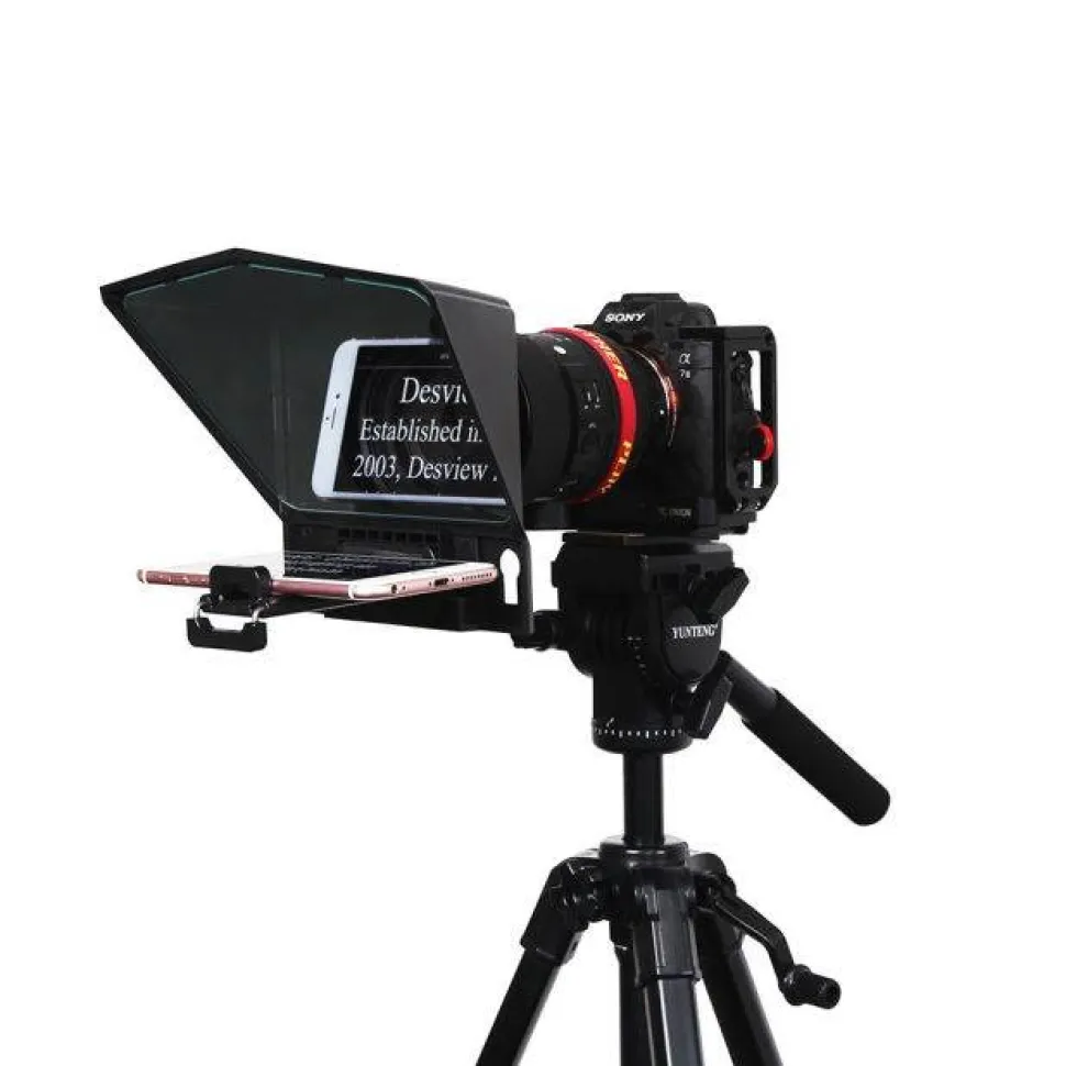 Desview T2 teleprompter is specially designed to work with a smartphone, tablet, and DSLR camera, easy to use and convenient to carry on;