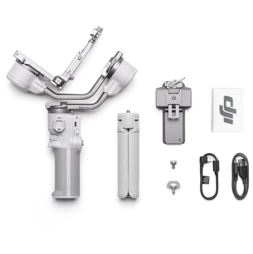 The DJI RS 4 Mini Gimbal Stabiliser is the latest compact and lightweight tool for content creators who shoot with a camera or smartphone. This generation RS 4 Mini develops on features and UI updates from  flagship gimbals, which includes camera control after Bluetooth pairing, second-gen. automated axis locks for quicker operation, and Teflon™ coated interlayers for smoother balancing.