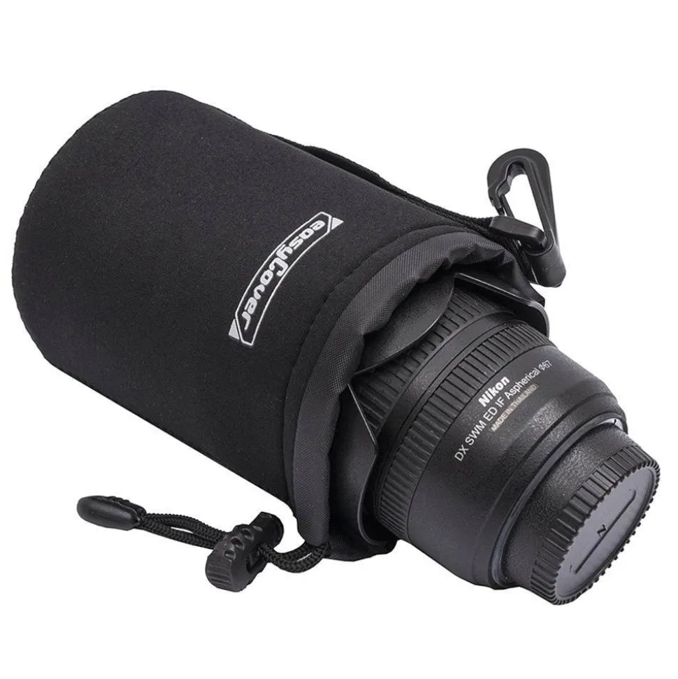 Sturdy lens pouch manufactured from soft neoprene to provide both light weight and excellent impact protection.