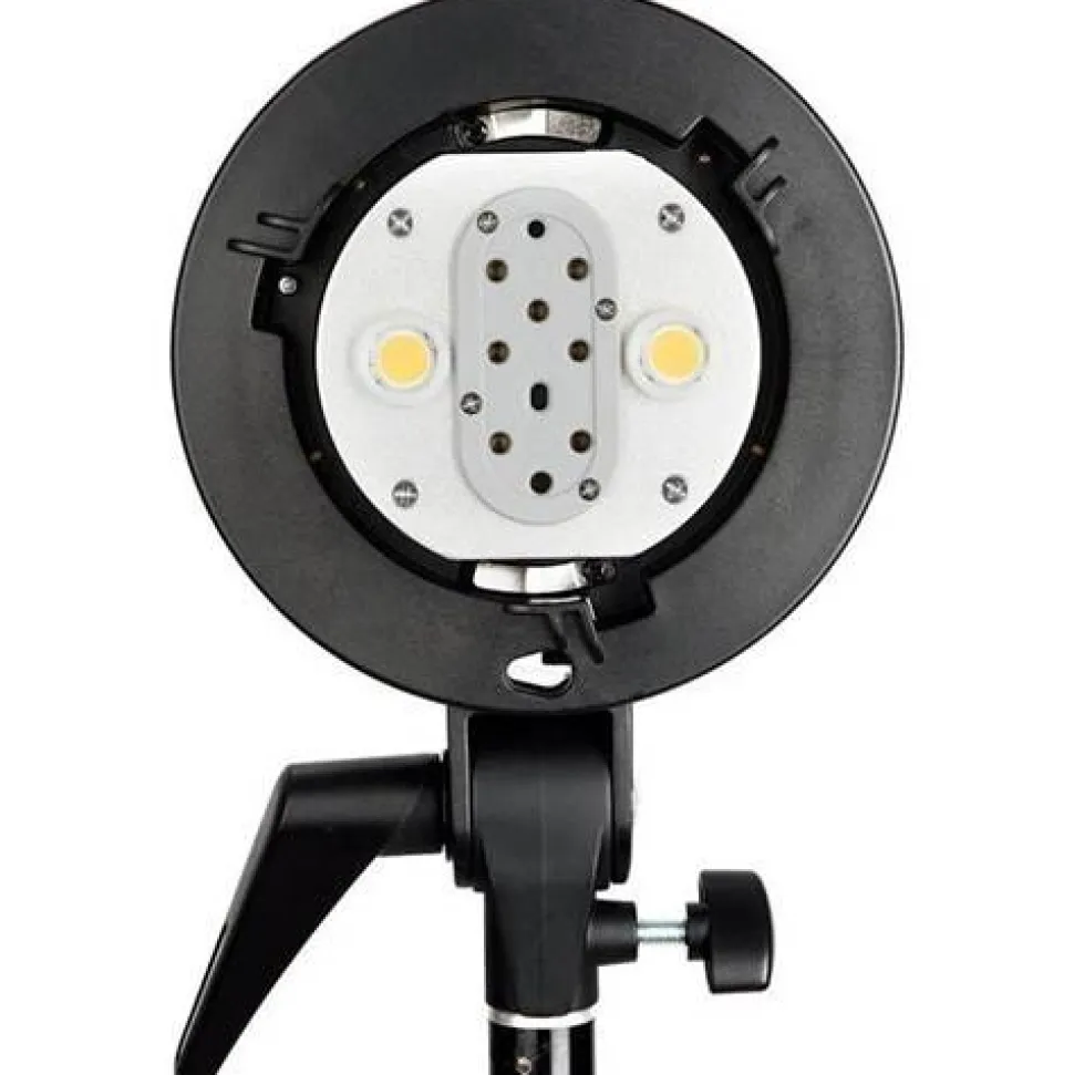 The AD-B2 allows you to install two AD200 lamps creating a powerful 400Ws flash head equipped with a light modification friendly Bowen S-type mount. This makes it possible to mount a wide range of accessories like reflectors and softboxes and the 5/8 ” connection allows you to easily mount the flash head onto lamp stands. The twin-head also features a modelling light for previewing your shot.