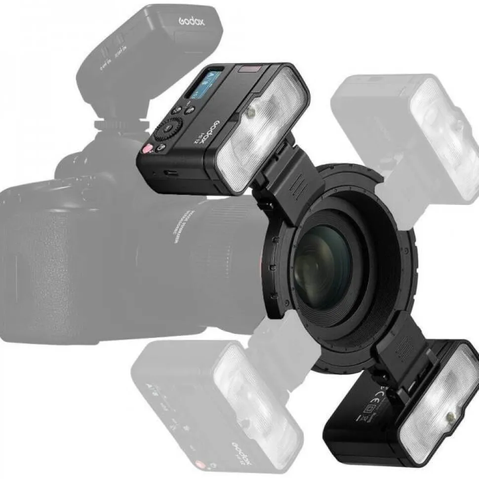 The MF12 K2 package includes two flashes that are mounted on a mounting ring (included) using an adapter suitable for the lens (see the list of diameters below). The kit itself significantly expands its application after buying additional flashes on the mounting ring. The kit can easily support a variety of scenarios, depending on the number of flashes and how they are placed.