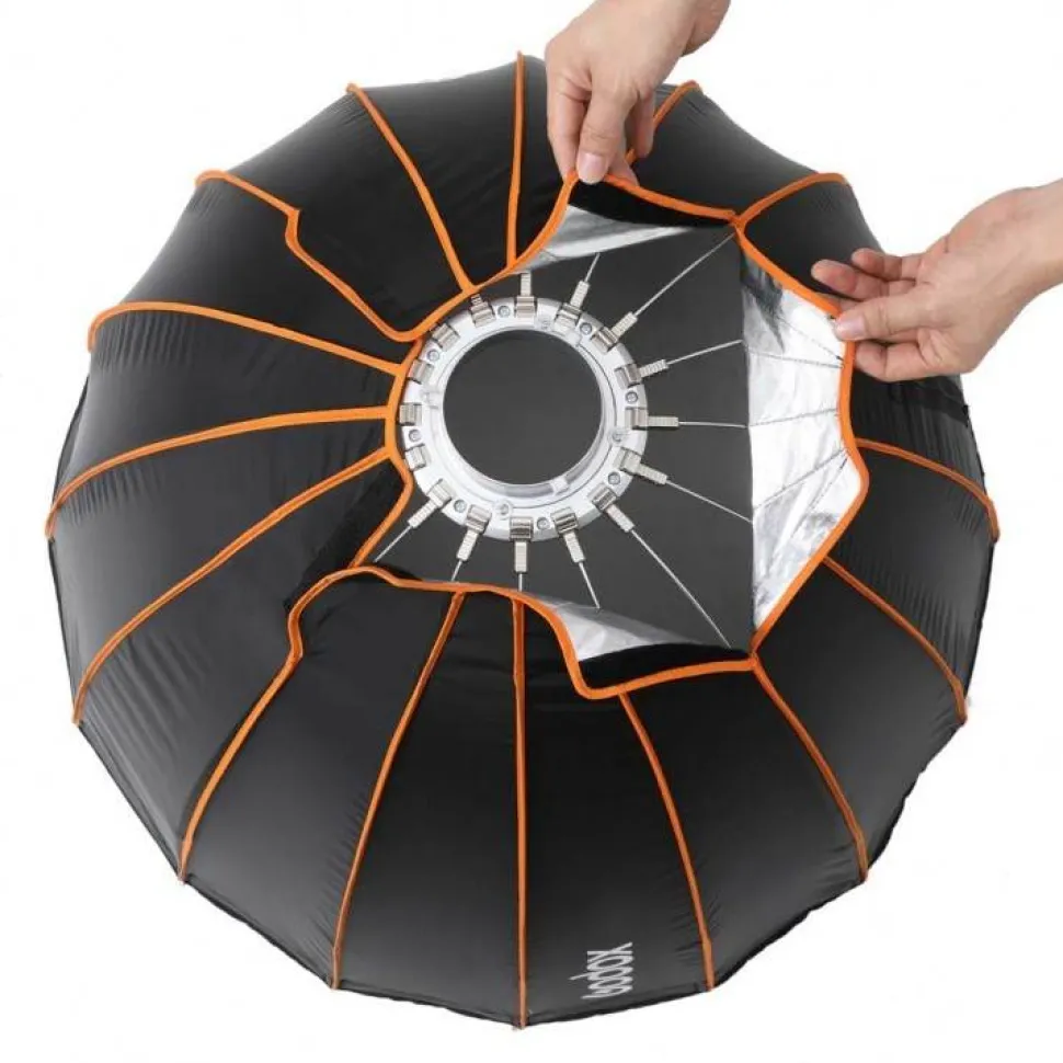 Godox quick release parabolic softbox adopts an impressive quick release system for rapid setup and breakdown. Highly versatile and compatible, it provides you reliable light quality and various creative expressions. Available in 3 different sizes, this fast and easy to use softbox is an ideal companion for your indoor and on location shootings.