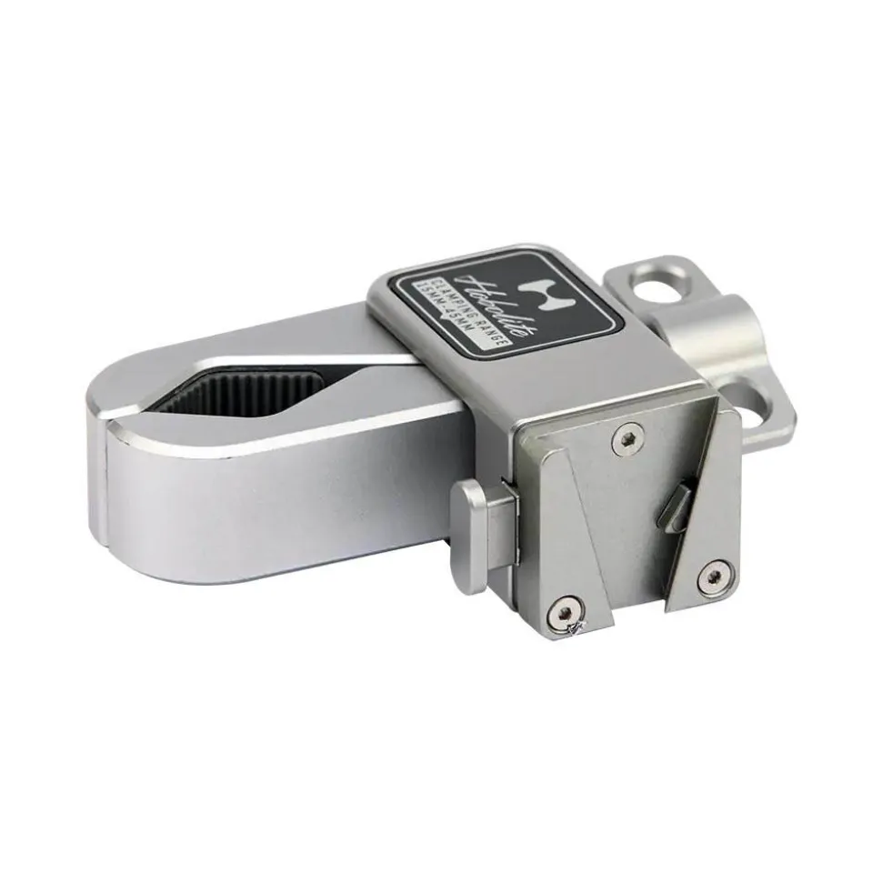 Hobolite V-Mount Clamp attaches to your light stand and holds your Hobolite power supply with the easy quick attach and release V-Mount mechanism standard throughout the Hobolite line.
