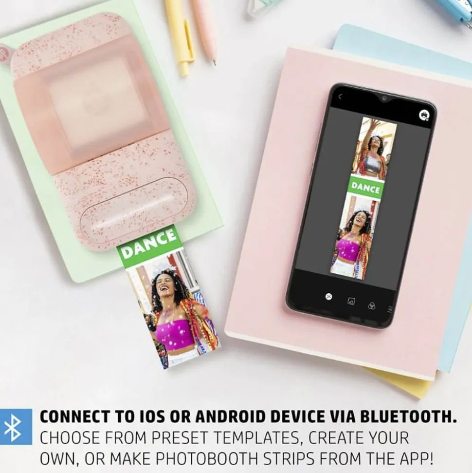 - ZINK TECHNOLOGY Print your creations on Zink sticky-backed paper and stick them to your scrapbook, bullet-journal, photo wall and more! Zink photo paper prints without the need for expensive ink or toner, and has colours embedded inside for amazing resistance to water, smudges, and tears.