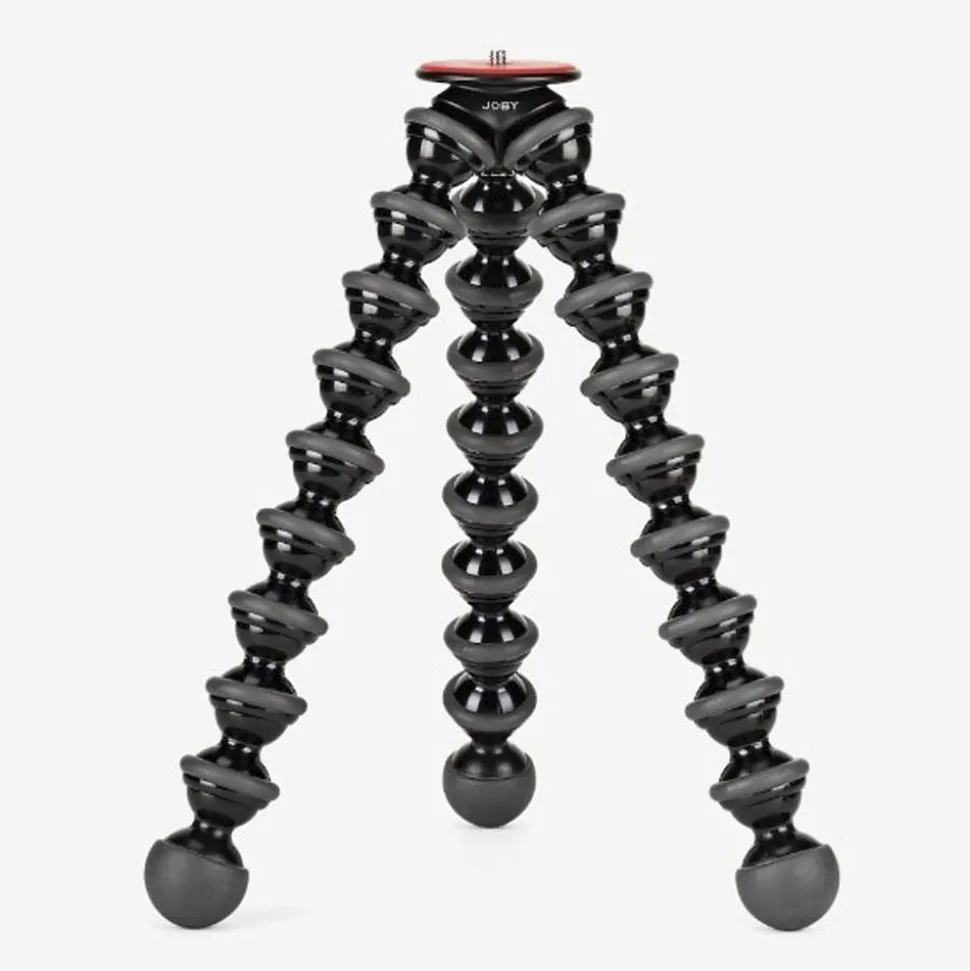 | Now made in Italy Built for the Pro, this machined aluminum GorillaPod supports professional cameras weighing up to 11 lbs (5kg) and comes with a standard ¼”-20 tripod screw on the top. Boasting remarkable versatility for supporting your gear, the GorillaPod 5K Stand from Joby has legs made up of several joints that allow you to wrap it around objects and adapt it for use in uneven ground. With a load capacity of 11 lb, it can reliably hold professional DSLRs, mirrorless camera s, and other kinds of gear. The notably compact construction of the tripod, featuring a 15.2″ height and 17 oz weight, makes it easy to store or carry it while travelling. To help improve its grip and stability on unstable surfaces, the joints and feet of the GorillaPod 5K are rubberized in certain areas. The rest of the tripod is made of metal and a proprietary ABS plastic designed to provide durability and stable performance. Featuring a 1/4″-20 screw for mounting, the stand can be used directly with your gear or attached to an optional ball head for further shooting capabilities.