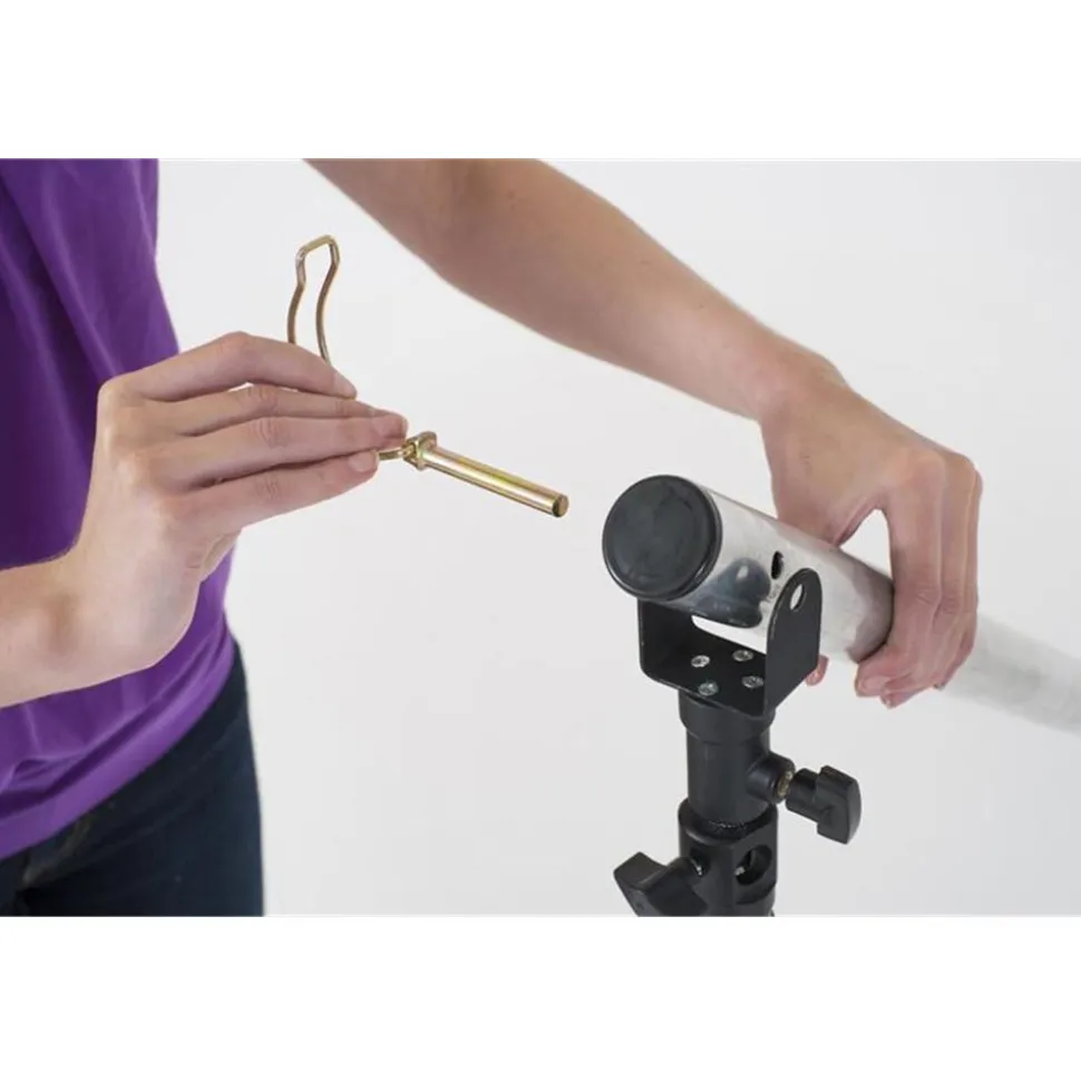 The Solo Background Support features a unique pivoting cross bar which makes raising the background on the supports a much easier and safer operation. Rather than step by step adjustments at each end of the support system, the new pivoting connectors allow for much greater steps without making the whole structure unstable and unmanageable. The support is available as a 10ft wide or 13ft wide solution. The 13ft version can also be extended to 19.7ft to accommodate wider textile backgrounds with the optional 6.5ft extension (LL LB1143). Each kit comes in a handy carry case which fits easily into a car.