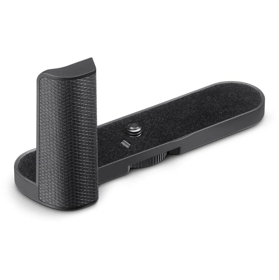 This handgrip can be fitted to the Leica D-Lux 8 for comfortable one-handed photography. When attached to the body of the camera, it provides support for the right hand and thus supports stable and safe shooting even one-handed. The handgrip is equipped with a 1/4″ screw thread for mounting on a tripod. It is not possible to use the handgrip in combination with a halfcase on the Leica D-Lux 8.