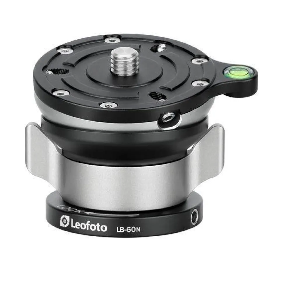 The Leofoto LB-60N Leveling Base is made of lightweight, black anodized aircraft aluminum for high durability and low weight. Both the base shell and the semi-spherical tripod plate are CNC-milled from single pieces of light metal for maximum stability. The total weight of the LB-60N is 206 grams and the height of the LB-60N is 53mm. Thanks to the 60mm wide base plate and top plate, you have maximum support for all possible types of tripod heads and macro rails. The carrying capacity of the LB-60N is less than 15 kilos so you can handle almost any job with this professional leveling base.