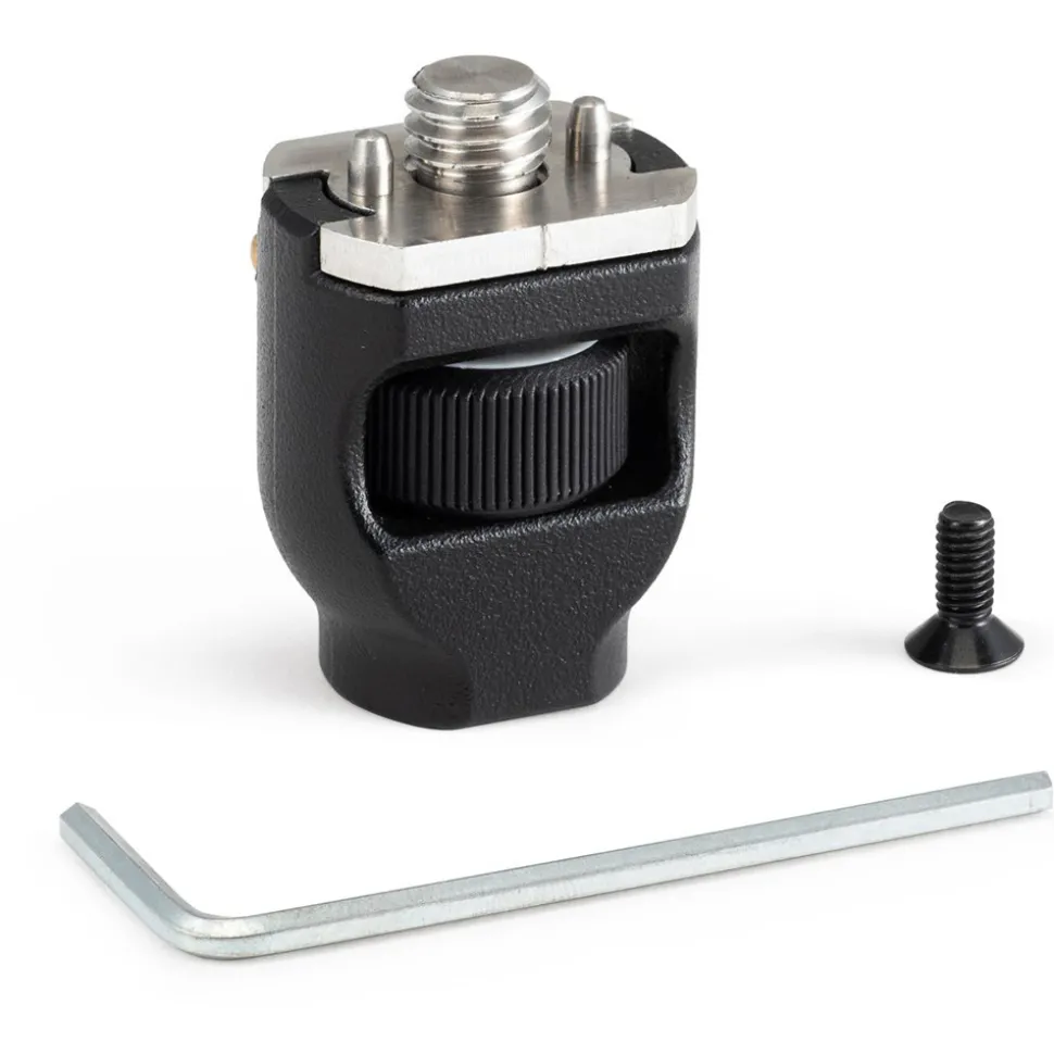 The Arri style Anti-rotation adapter features a 3/8” thread with tightening knob and two anti-rotation pins to ensure a secure and solid fixing. The reversible steel plate featuring the anti-rotation pins also allows use of the 3/8” thread without the pins for added versatility.