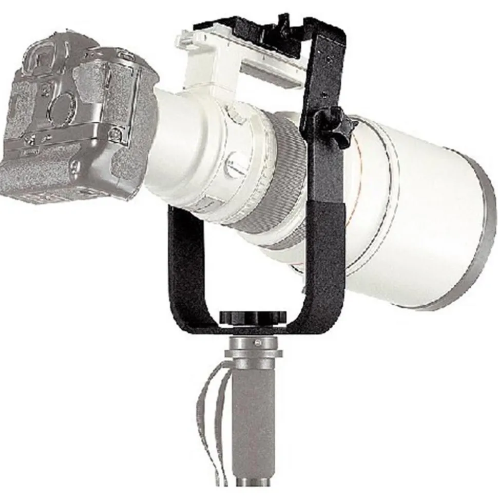 Specifically developed for use with very long lenses on Monopods. Key features: Friction base which enables the bracket to pan on Monopod, also can be used on a tripod. Two rubber hand grips plus rubber protection to prevent damage to lens when tilted to maximum. Variable centre height adjustment in three steps.