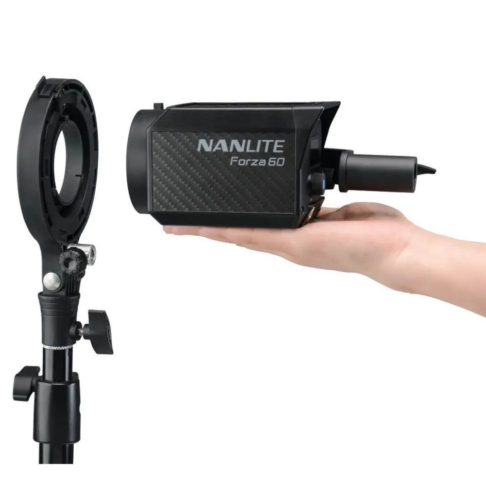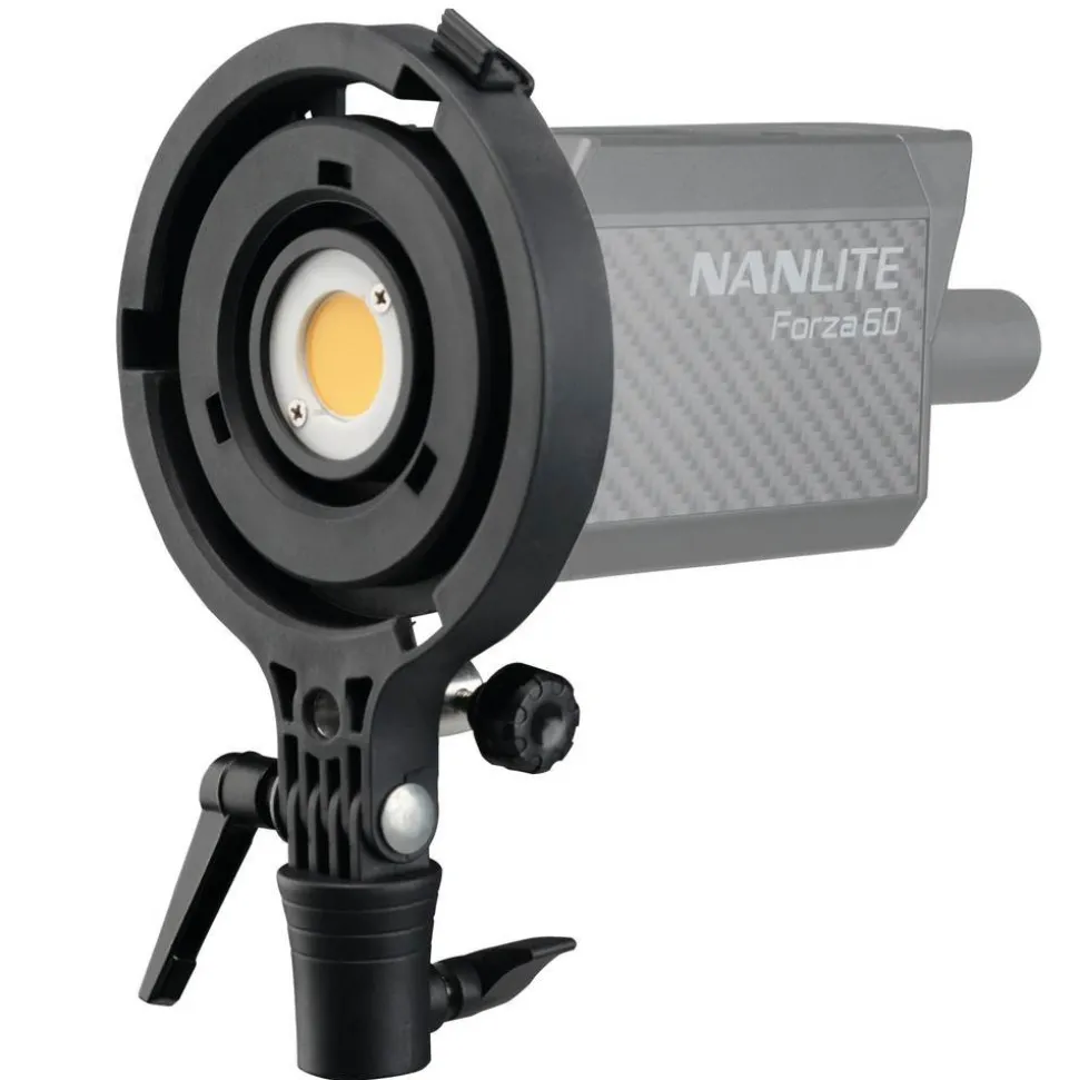 - BOWENS-STYLE LIGHT MODIFIER MOUNT – Utilizing a near-universal Bowens style, this adapter makes the Forza 60B, 60, and 150 compatible with a massive selection of light modifiers. Including, but not limited to, Nanlite’s own line of softboxes.