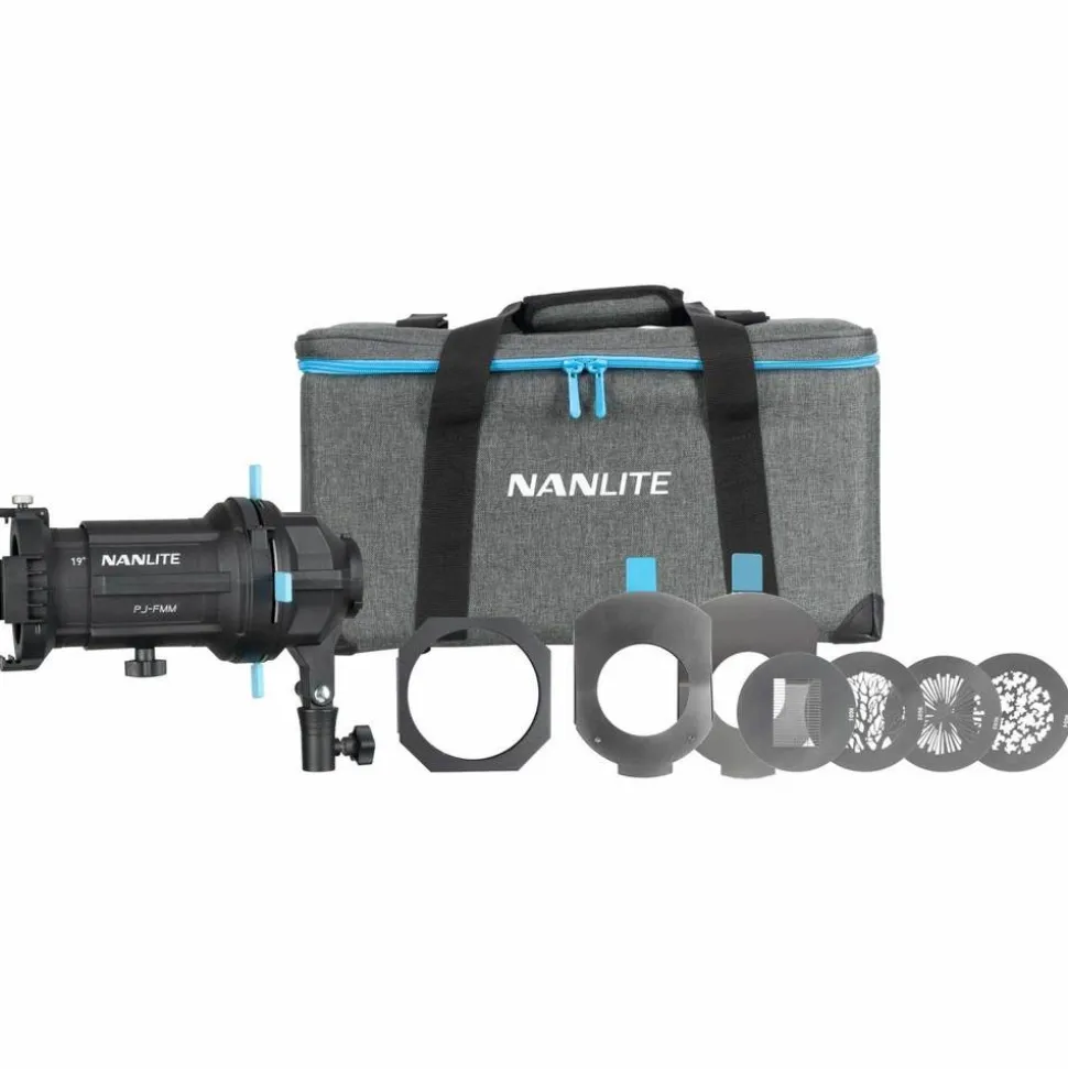 The Nanlite Forza PJ-FMM Projection Attachment with 19° Lens for FM Mount can increase the light output 17 times while still maintaining a smooth, even beam with minimal fall-off.