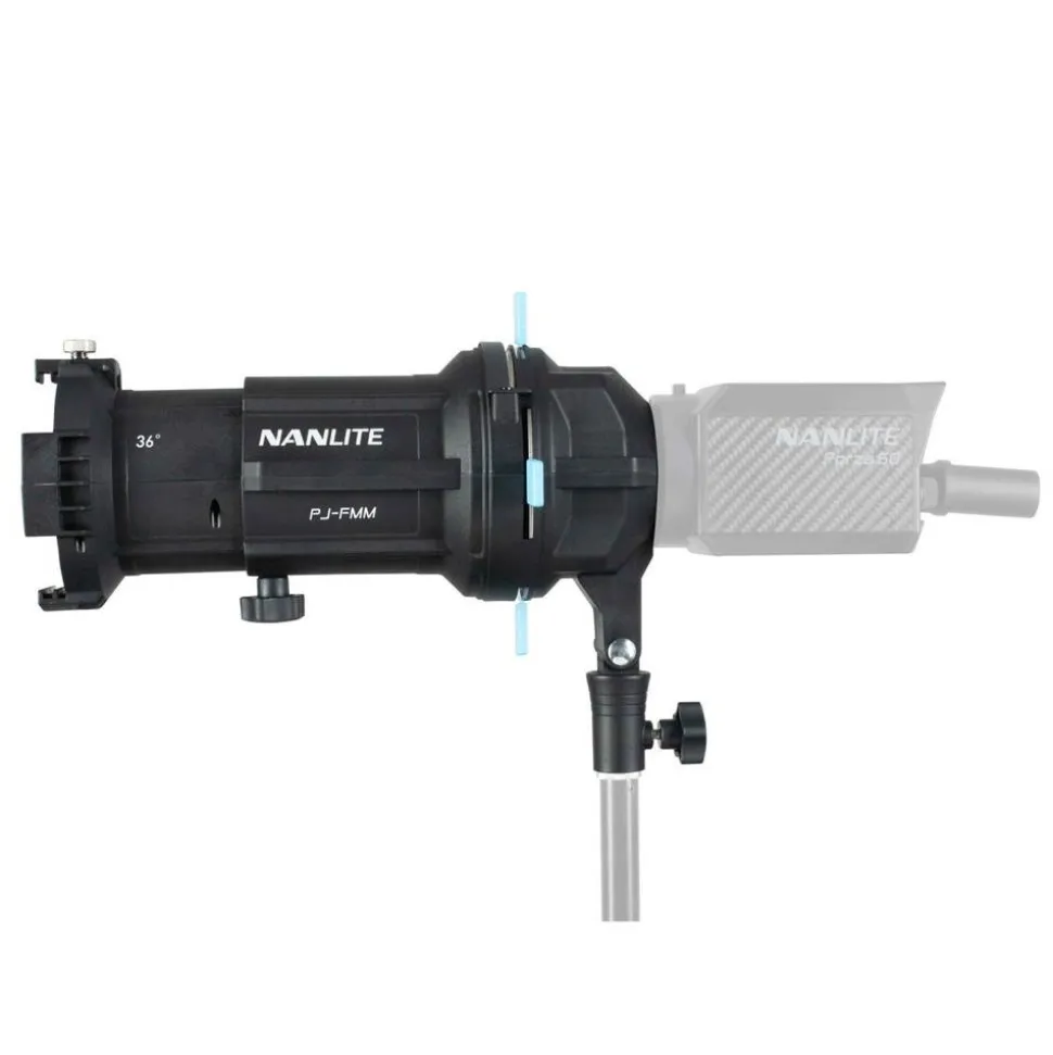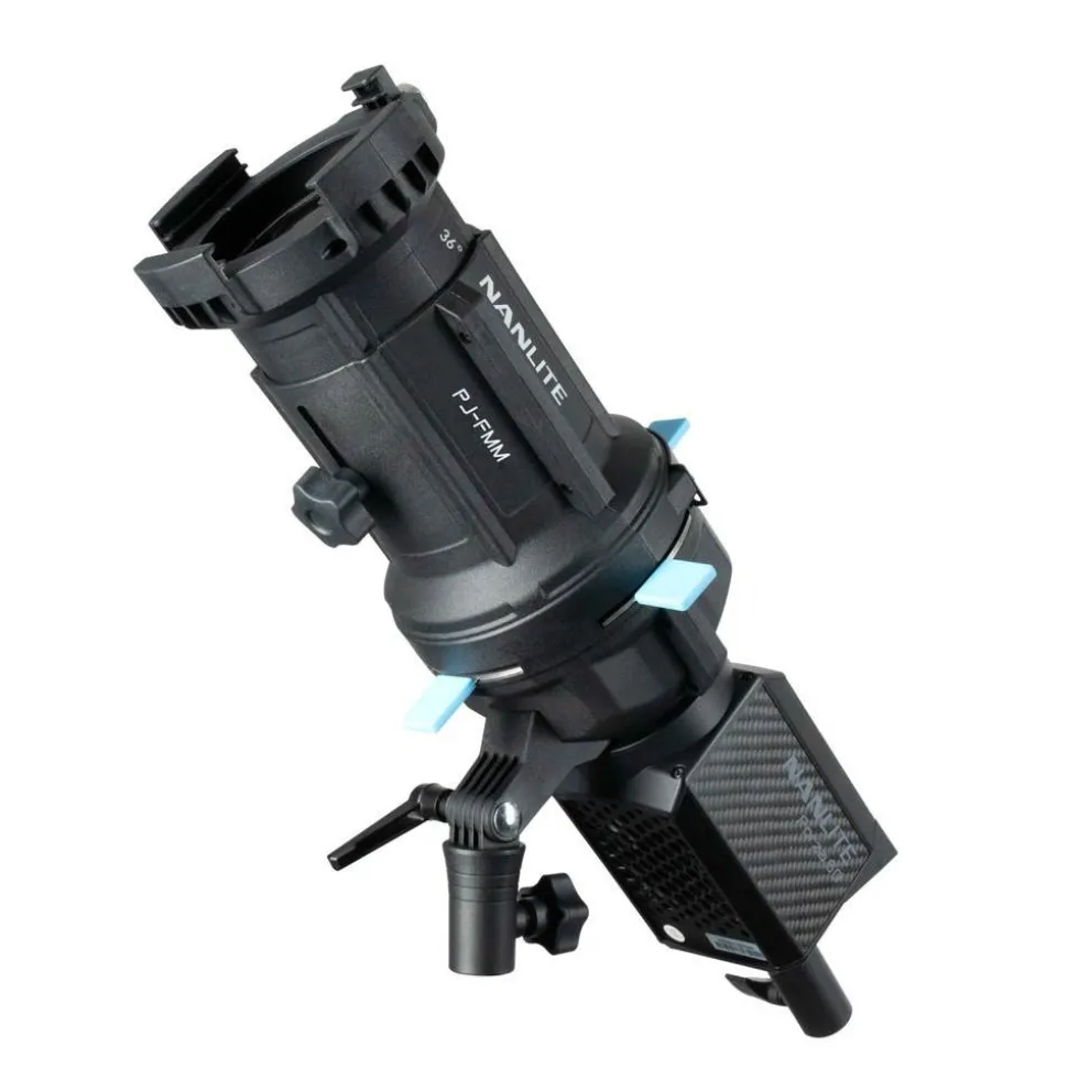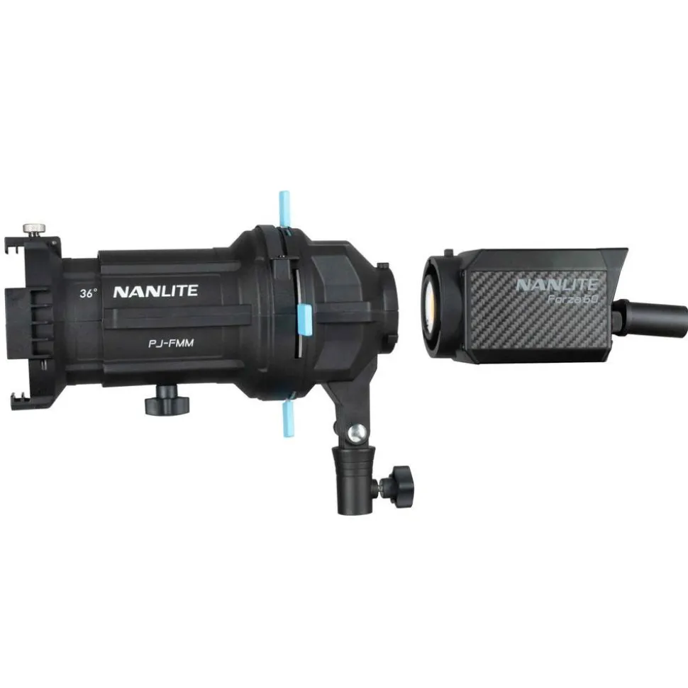 The Nanlite Forza PJ-FMM Projection Attachment with 36° Lens for FM Mount can increase the light output 17 times while still maintaining a smooth, even beam with minimal fall-off.