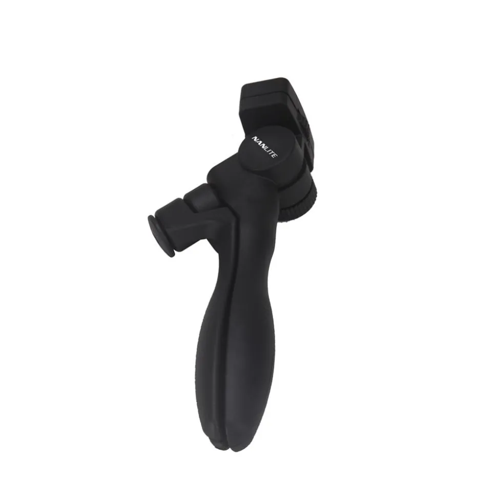 The NANLITE AS-MT/HG-1/4 can be used either as a hand grip for handheld shooting or can fold out to a table top tripod making it compatible with small NANLITE fixtures.