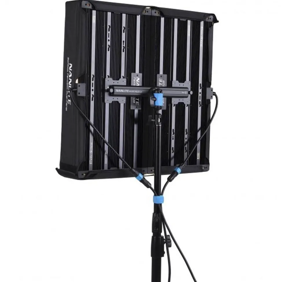The Nanlite Dual-Panel Coupler and Softbox Kit provides the hardware needed to join two PavoSlim 120C or 120B LED panels together in either a 2×2 or 1×4 configuration. It also includes a folding softbox that can be fitted to either size, two sets of dual-layer diffusion and two egg-crate grids to accommodate both size configurations, and a carrying bag for storage and travel.