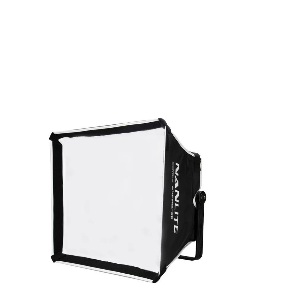 The Nanlite MixPanel 60 Softbox mounts directly onto the fixture via touch fasteners and softens the output of the bright LEDs and also reduces contrast. Flattering Light The Nanlite MixPanel 60 Softbox removes the harshness of raw LED light, while also reducing light loss via a reflective silver interior.