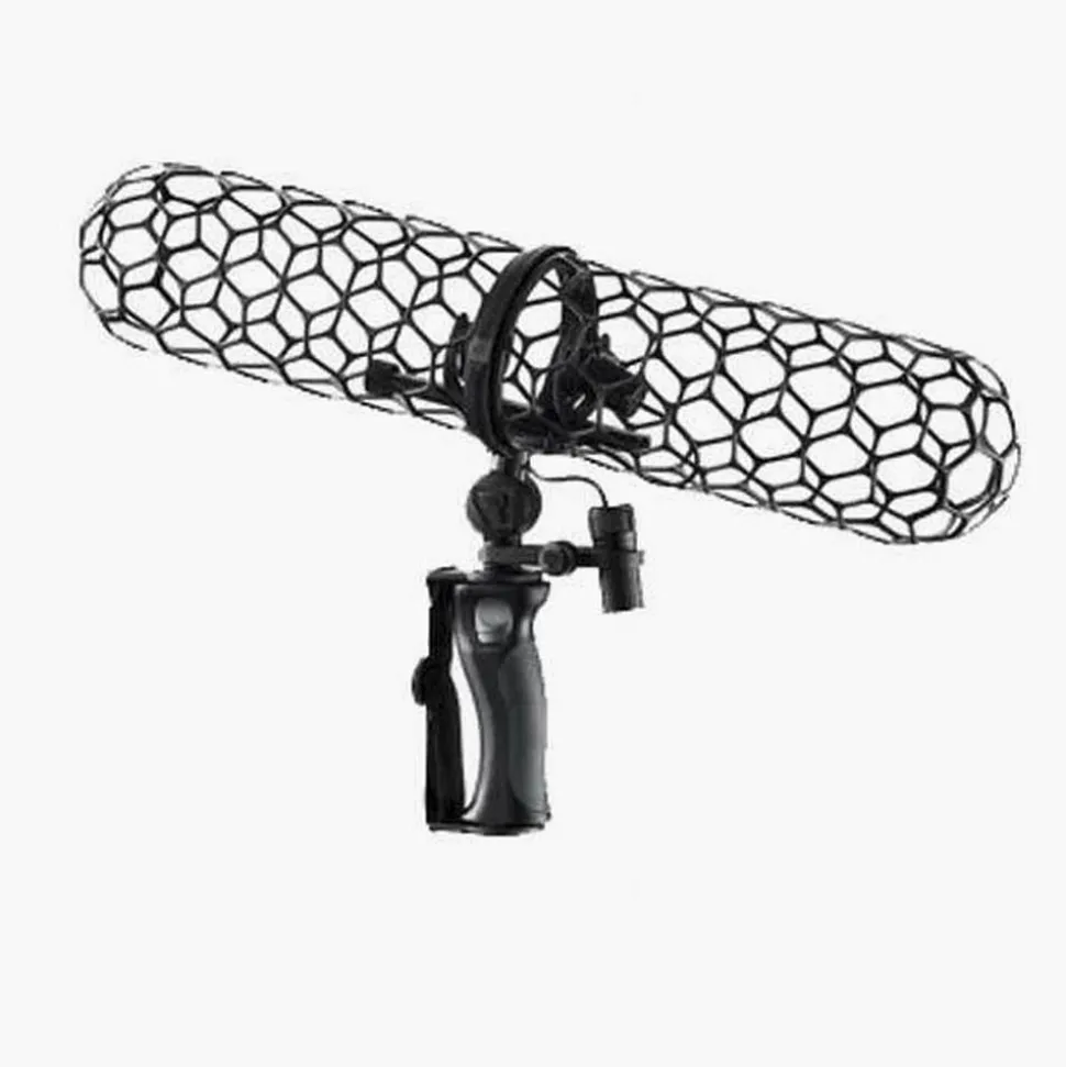 The Nano Shield also features an oval blimp design with non-parallel sides for better wind protection and less internal resonance. The large hexagonal pockets provide better acoustic transparency and less high frequency loss. Other features include a slim design friction-braking swivel arm, low profile XLR cable with built-in RF filter and switchable 80Hz low-cut, ergonomic handle with built-in PCS quick release, and removable/interchangeable windshield socks. The Nano Shield is compatible with various microphone sizes and can be configured using the unique magnetic locking basket design. Overall, the Nano Shield sets a new standard for performance and versatility in windshield kits.