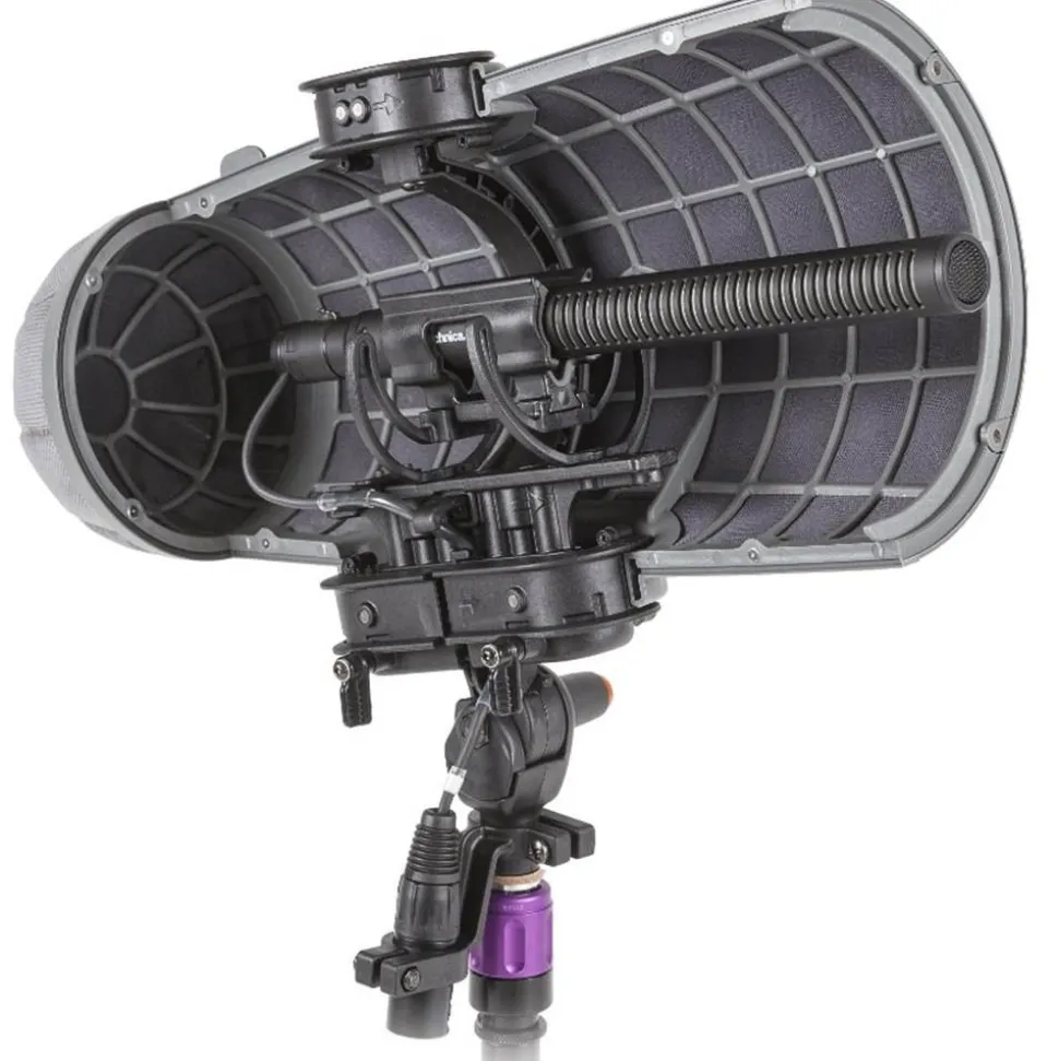 Rycote uses its industry-leading Lyre® microphone suspension to reduce the bulk of shock and handling noise. Stereo Cyclone also features the Rycote Floating Basket Suspension (patent Pending): an innovative design that prevents natural resonances and vibrations from bypassing the main suspension and radiating from the structure of the basket itself (an effect known as ‘acoustic re-radiation’). Stereo Cyclone takes the Lyre principle and incorporates it into the portions of the suspension that connect directly to the basket; the entire structure ‘floats’, isolating problem internal vibrations originating from boom poles and other sources. Stereo configurations are particularly susceptible to the effects of acoustic re-radiation, since more microphones point at the overall surface of the basket: that’s why we made extra sure the Floating Basket Suspension was incorporated. The result is a windshield with superb vibration isolation.