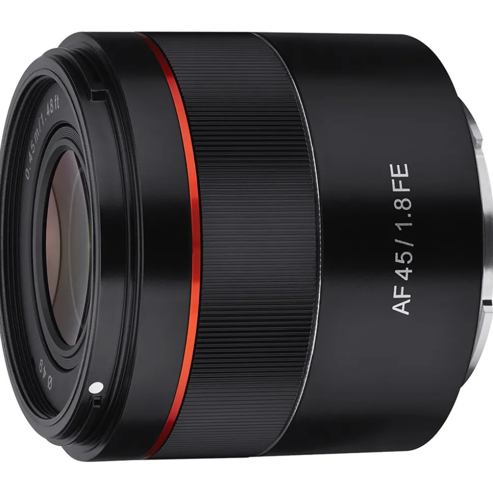 A sleek and versatile prime, the Sony E-mount AF 45mm f/1.8 FE from Samyang is a normal-length prime characterized by its compact design and bright f/1.8 maximum aperture. The optical design incorporates a pair of aspherical elements and one extra-low dispersion element, which help to suppress spherical and chromatic aberrations for improved sharpness, color accuracy, and clarity. An Ultra Multi-Coating has also been applied to reduce flare and ghosting in order to achieve higher contrast when working in strong lighting conditions. Additionally, the lens’s autofocus motor works in conjunction with Sony camera s’ AF systems for quick and precise focusing performance, and manual focus override is also available for more refined control.