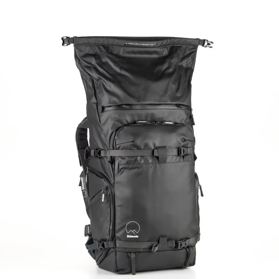 The X40 is designed to carry gripped bodies and will comfortably fit most mirrorless and DSLR cameras (up to 6.7 in or 17cm tall) via our DSLR Core Unit series. Its roll-top access allows users to expand or compress the volume to the demands of the day. It features multiple attachment straps, including TPU compression straps for greater durability when attaching skis, and its removable helmet holder lets users secure mountaineering, ski or bike helmets to the outside of their pack.