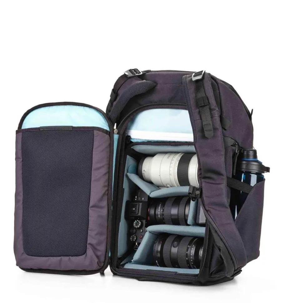 Several features have been designed to keep your gear safe while out shooting and during travels. These include a hidden AirTag sleeve to store your tracking device, a hidden passport and valuables pocket, which is safely tucked away, and side access can be zipped shut for an added layer of protection.