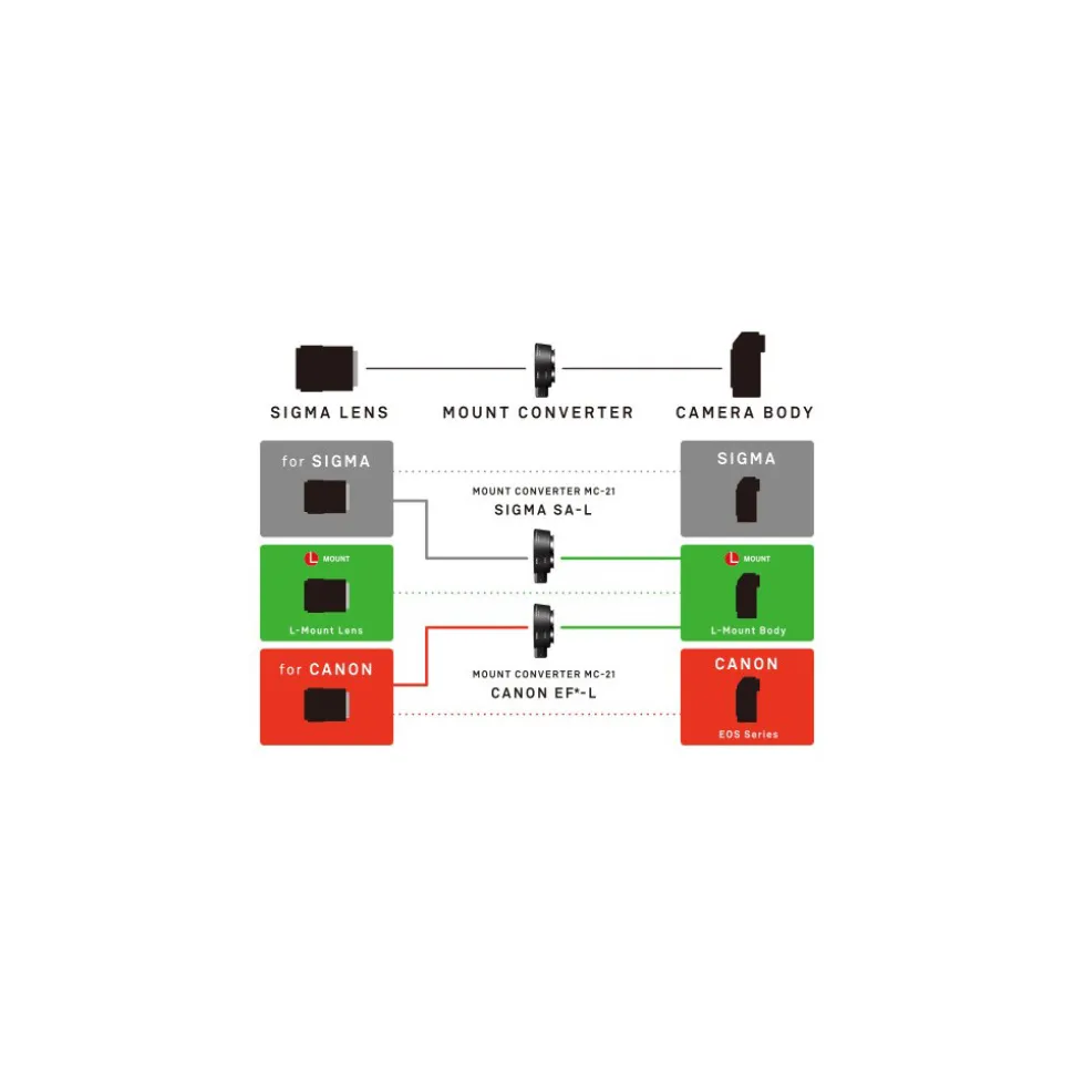 - Enables the use of Sigma SA-mount lenses on L-mount bodies (Panasonic S1/S1R)