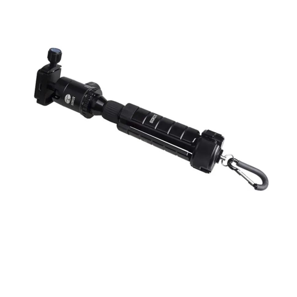 The 10cm legs provide great stability and have rubber tips. The feet can also be folded up or down by 180° for use as a handheld tripod and they can then be used as a handle. The carabiner means that the tripod can be conveniently carried on a belt or backpack.