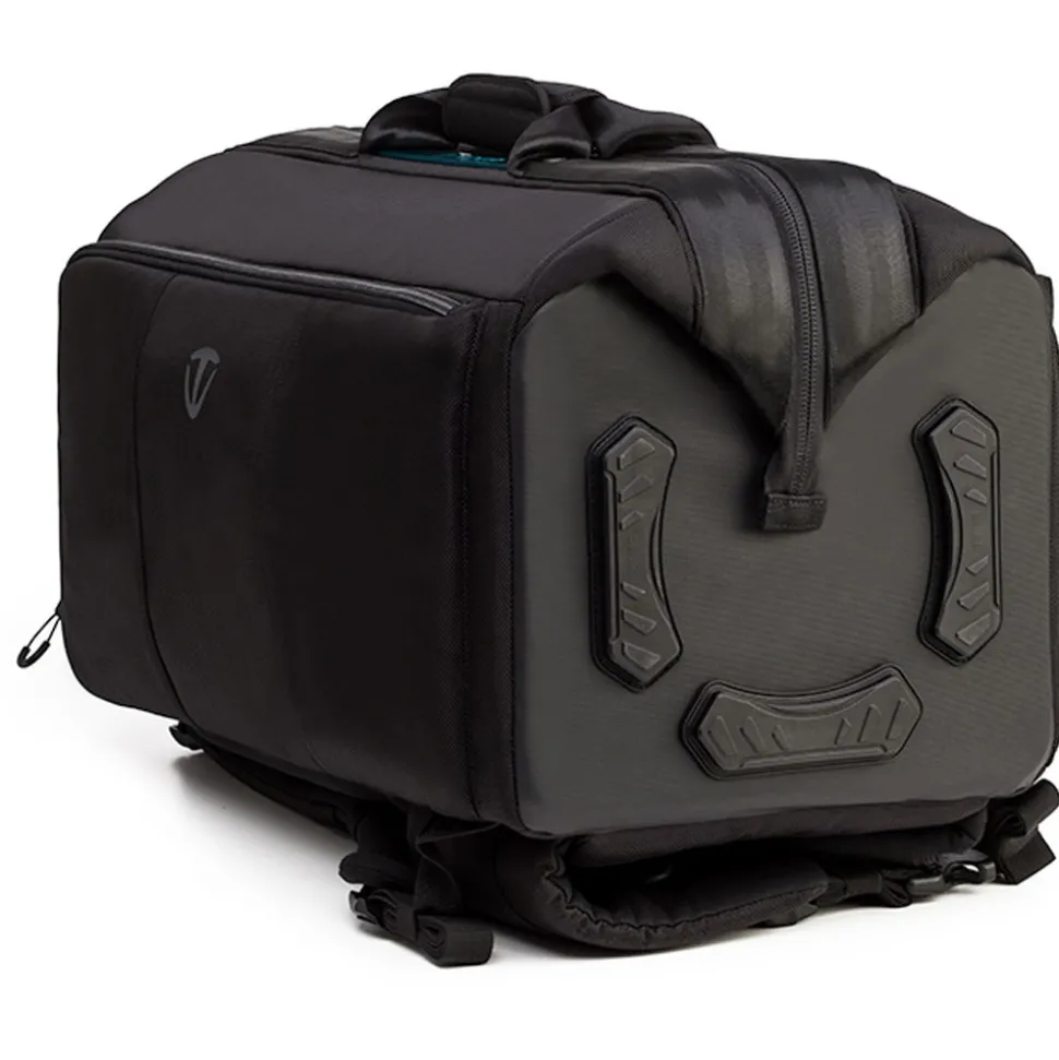 | The Cineluxe Backpack 24 fits professional camcorders, cinema cameras and ENG rigs from ARRI, Sony, Canon, RED, Blackmagic and others. The interior height (12 in/30 cm) and length (21 in/53 cm) enables camera rigs to be stored with baseplate, matte box, monitor, mic and battery attached, ready to shoot. This is the first ever video camera backpack developed with a quick access “doctor bag” style opening. The bag includes two padded wraps and a padded zippered pouch, as well as a protective lens pillow and a camera security strap. To ensure the Backpack 24 is comfortable to carry even when fully loaded, it features Tenba’s ventilated Airflow back panel and Pivot-Fit harness straps that automatically adjust for different shoulder and body types. |