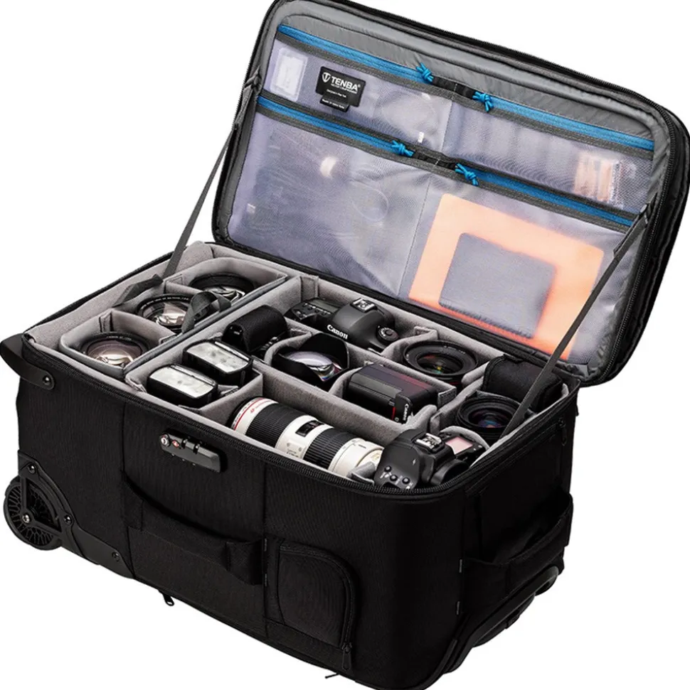 Tenba Roadie are built for protection, durability and worry-free transportation of your expensive content equipment. The Tenba Roadie Roller 18 is designed to move , and compact , as well as long and portable to any location. The Tenba Roadie Roller 24 passes many international and U.S. domestic carry-on travel regulations without drawing unwanted attention.