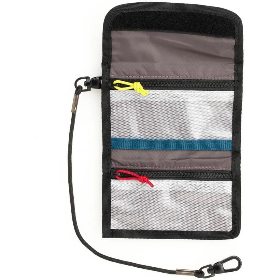 The Reload Universal memory card wallet carries up to 8 CF cards, 12 SD cards or unlimited Micro SD cards. Two pockets with yellow and red zippers allow multiple memory card styles to be sorted by Empty and Full status. The wallet has a velcro loop to attach to a belt, shoulder strap, backpack harness or other MOLLE-compatible loops to keep memory cards close at hand. The included security cable connects to a D-ring on a bag or tripod for safety. A clear pocket on the back provides storage for business cards.