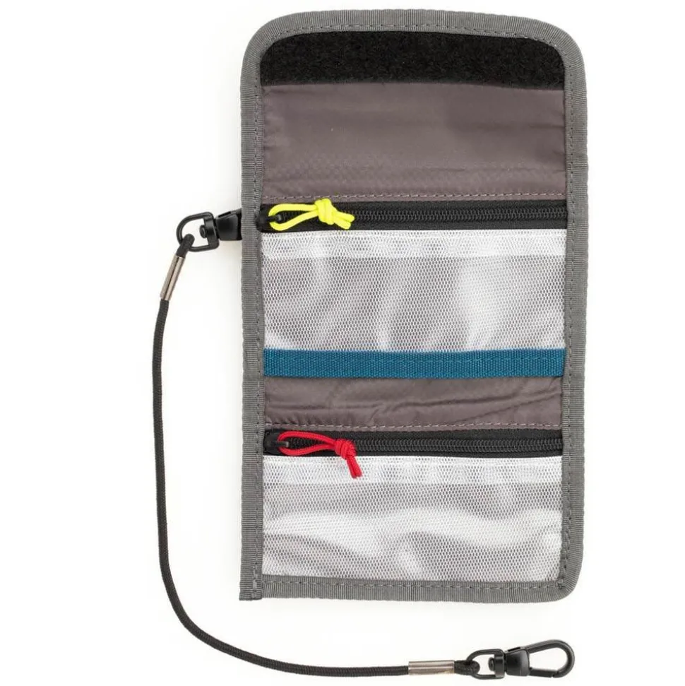 The Reload Universal memory card wallet carries up to 8 CF cards, 12 SD cards or unlimited Micro SD cards. Two pockets with yellow and red zippers allow multiple memory card styles to be sorted by Empty and Full status. The wallet has a velcro loop to attach to a belt, shoulder strap, backpack harness or other MOLLE-compatible loops to keep memory cards close at hand. The included security cable connects to a D-ring on a bag or tripod for safety. A clear pocket on the back provides storage for business cards.