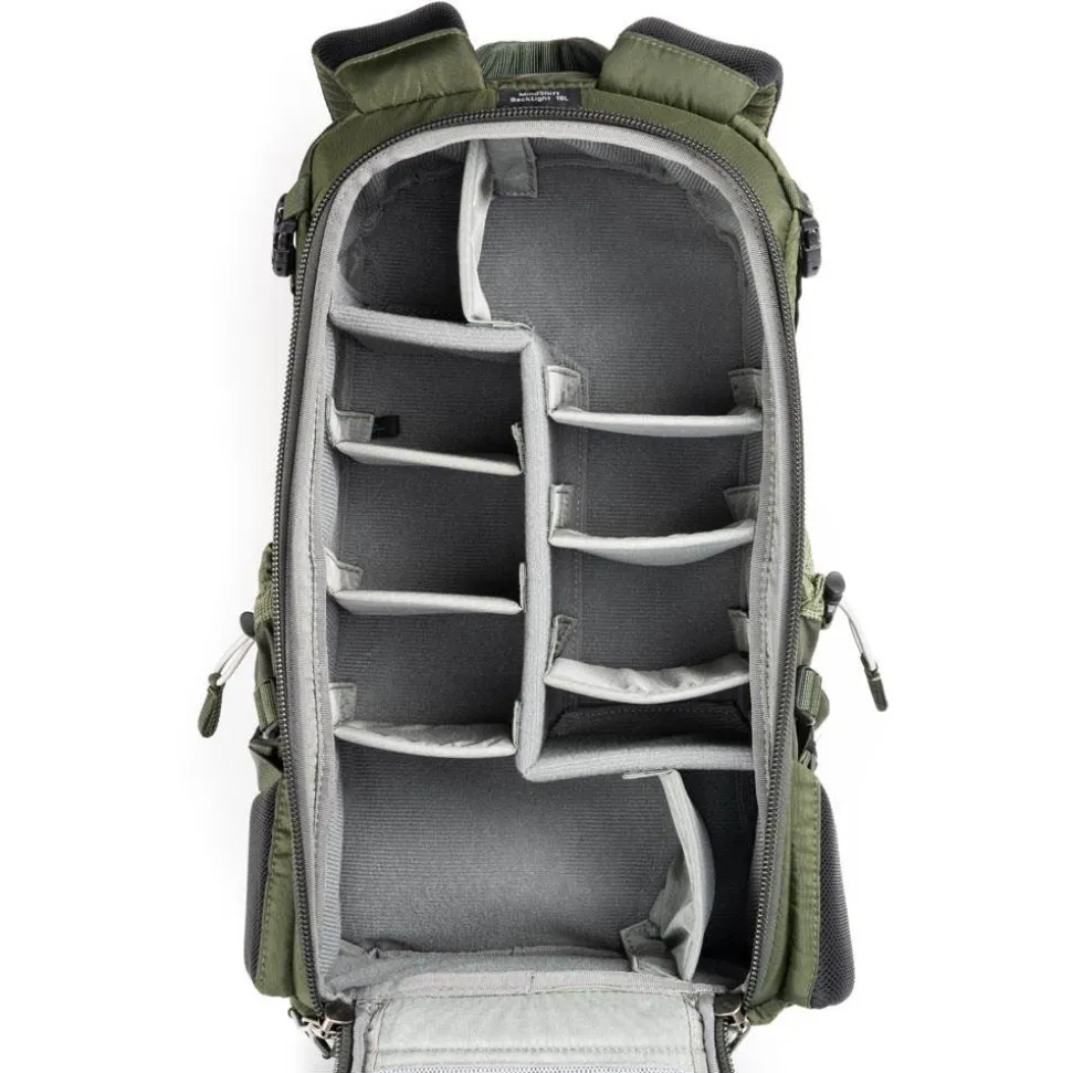 The BackLight 18L, with a rear-panel compartment for photo gear, allows you to access your gear without taking off the backpack. You can change lenses or just snap a quick photo simply by spinning the bag to the front of your body while the waist belt is still secured. Rear-panel access also adds security when traveling since your camera gear is protected behind your back.