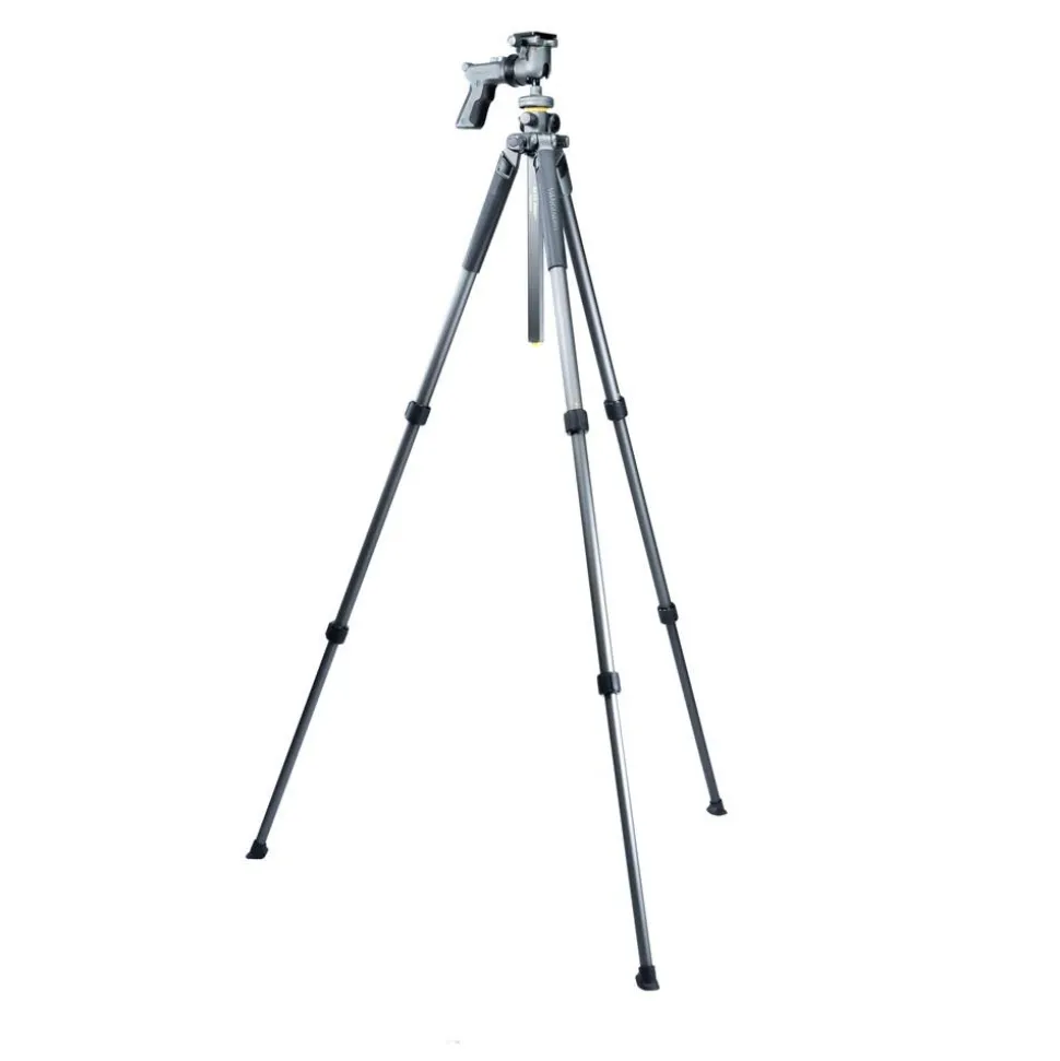 It’s GH-100 pistol grip-style ball head has a Grip Position Release System with a handle that allows 360-degrees of panning movements and -32 to +90 degrees of side-to-side tilt and -8 to +0–degree back to front tilt movement all around.