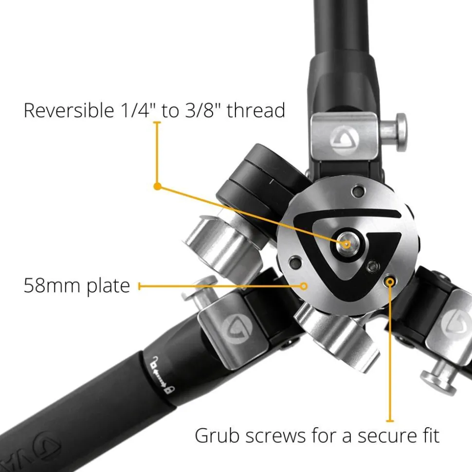 The Multi-Angle Central Column can also be used as a Multi-Mount when paired with the VEO+ MA1 Adaptor (provided), allowing you to attach additional equipment to make the most of your photo, without needing to carry extra tripods. Simply set the Multi-Angle Central Column in the position you want, slip on the VEO+ MA1 and lock it in place and you’re ready to add that microphone or lighting unit. While accessories can be added directly onto the VEO+ MA1 using the 1/4” thread, for the best results, we would recommend you use an additional head which will give you greater control.