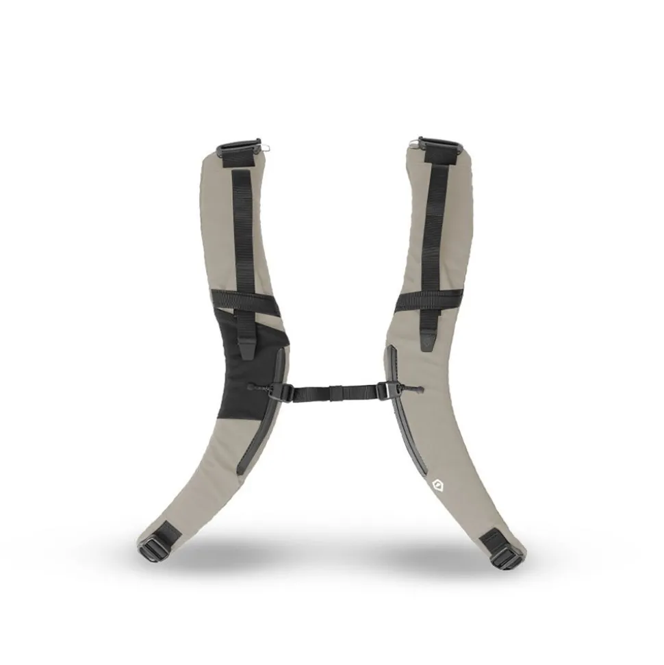 The padded air mesh Tan colour Trekking Shoulder Straps in Medium / Large size from WANDRD are made for people with longer torsos and fit the FERNWEH backpacking bag perfectly even with heavy loads.