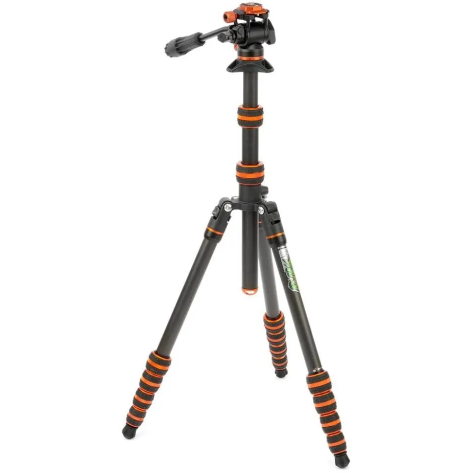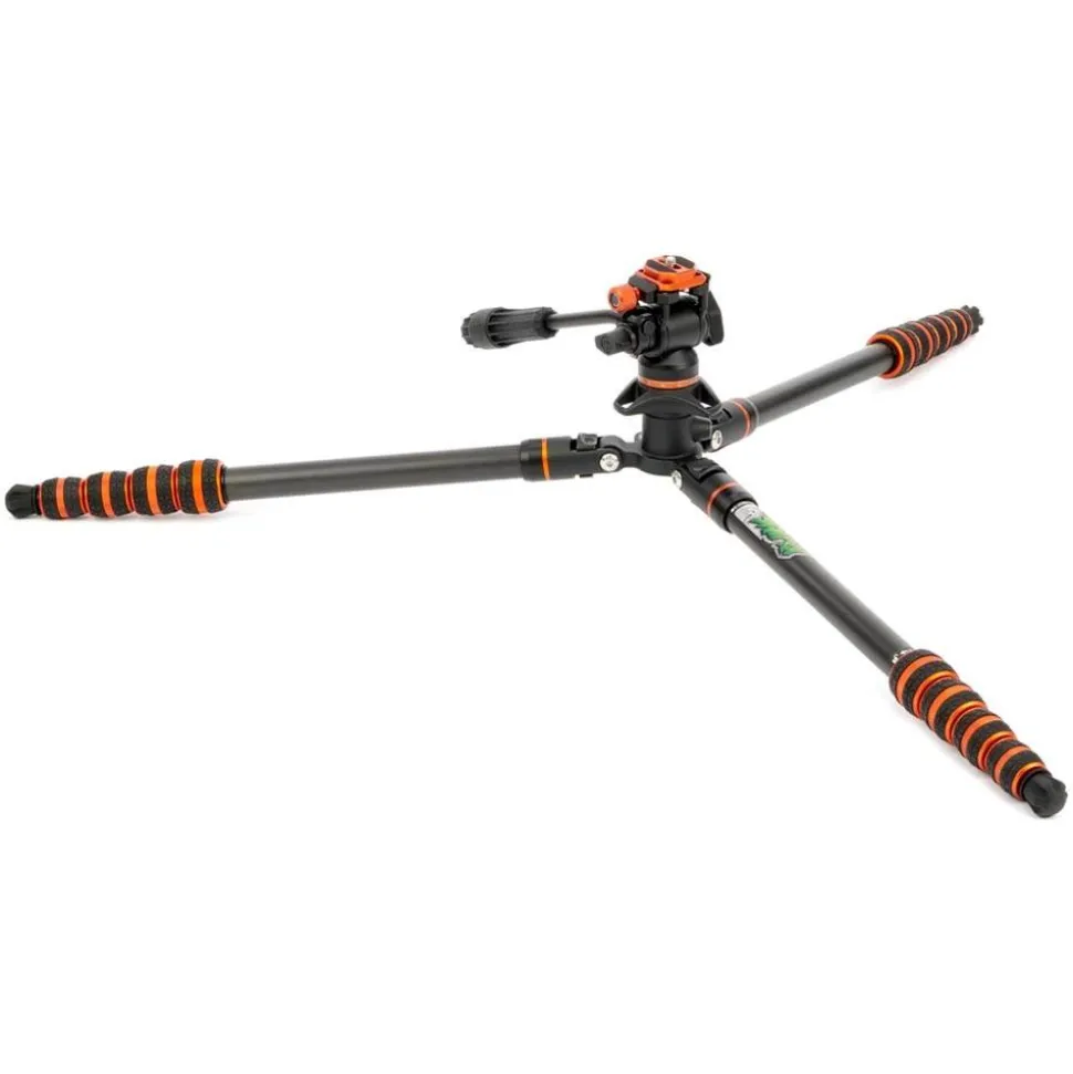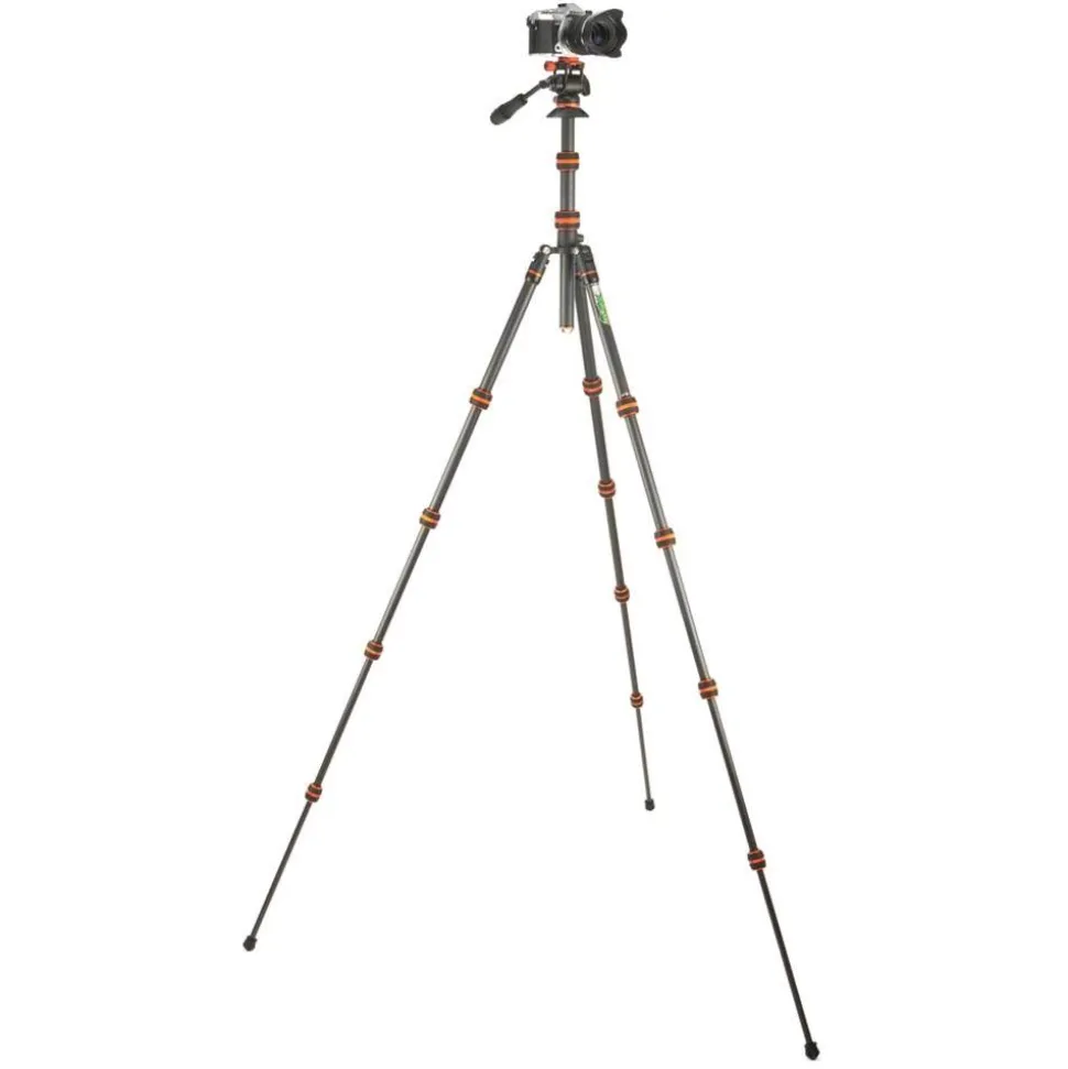 The 3 Legged Thing Brian Video 2.0 Tripod Kit Lava (orange and black) offers the ultimate in travel tripod systems, collapsing to just 42cm and weighing in at 1.71kg. This stands out with carbon fibre legs that not only detach for use as monopods or boom poles, but can also convert to lighting stands thanks to their length. Its versatility extends with a removable and reversible centre column, enabling low platform setups ideal for ground-level shots.
