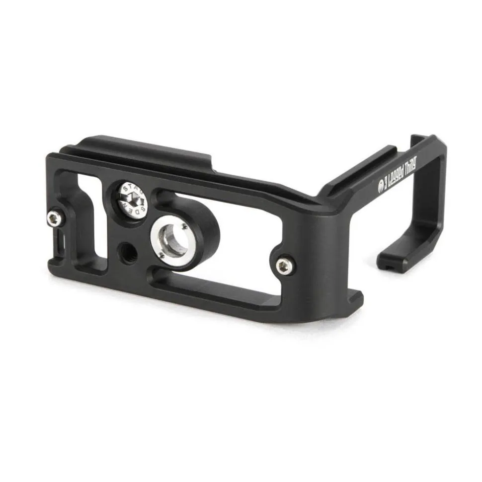 This Arca-Swiss compatible L-bracket is contoured to give a secure fit, and the vertical aspect features an indent for access to the camera’s strap lug. The cut-out in the vertical aspect enables the rear screen to be flipped out and tilted and the base features a 1/4″-20 screw thread for attachment of accessories in portrait orientation.