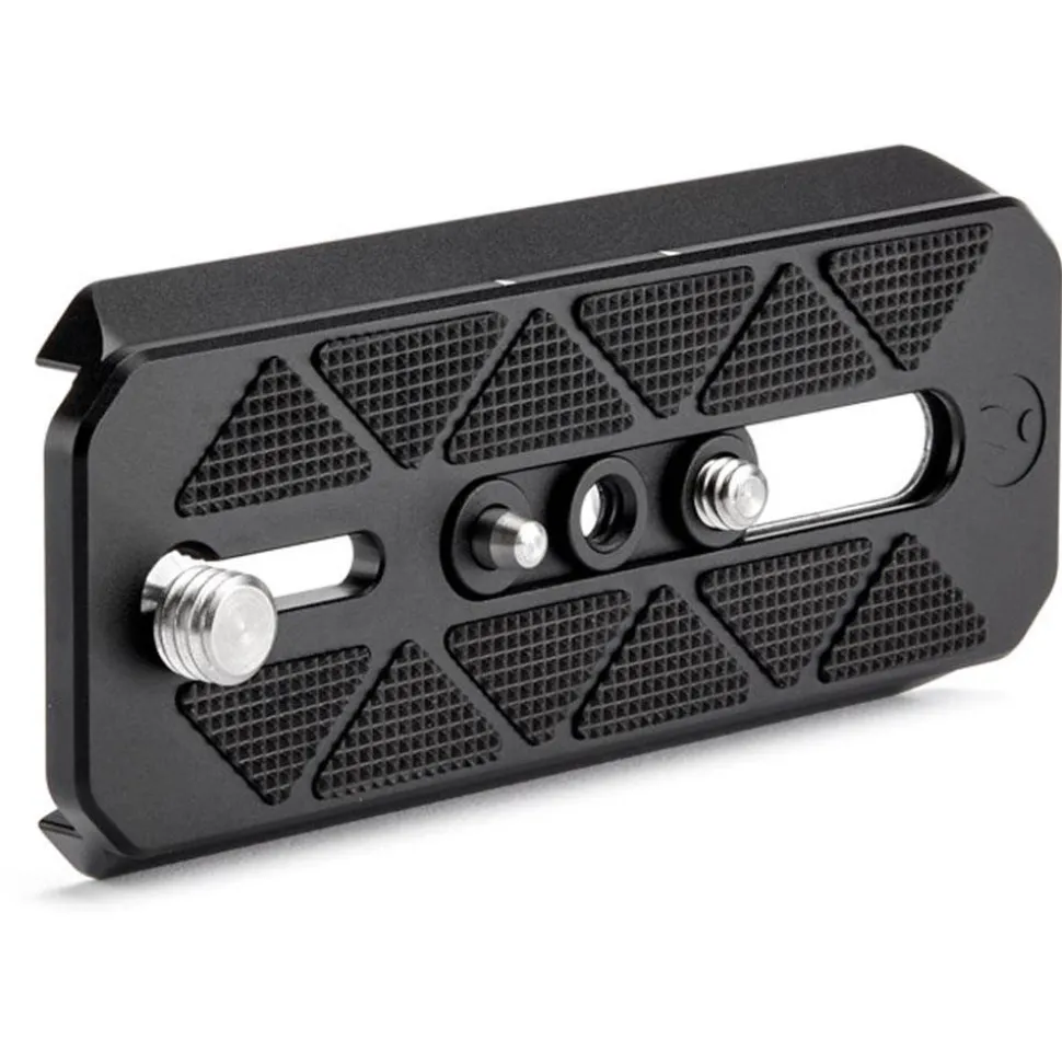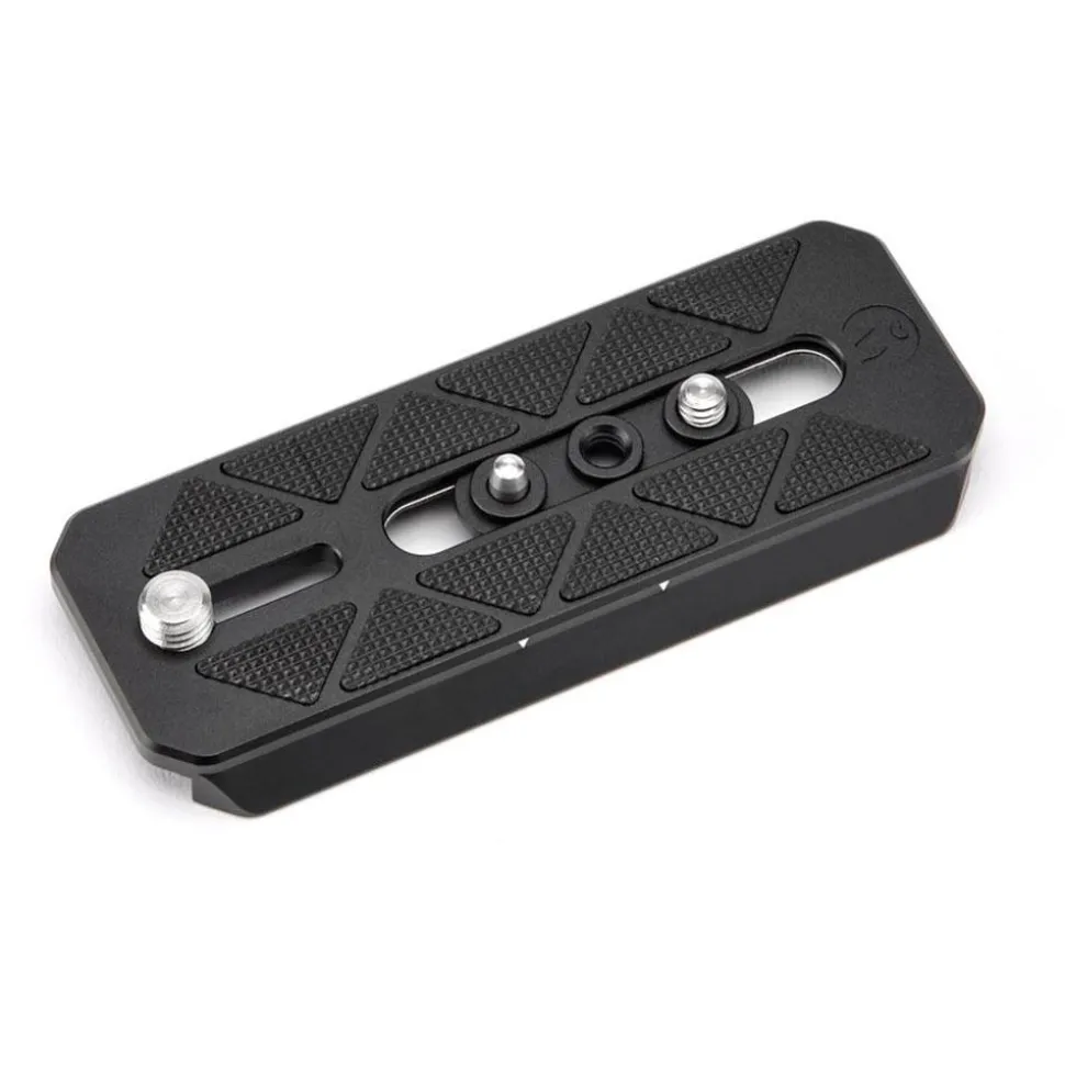 The QR-CINE-V is precision engineered using aerospace grade anodised magnesium alloy. It has a moveable mounting section that has both 1/4″”-20 and 3/8″”-16 threads along with a spring-loaded, retractable, locking pin. The plate also features rubberised pads for secure connection to camera bases for better grip.