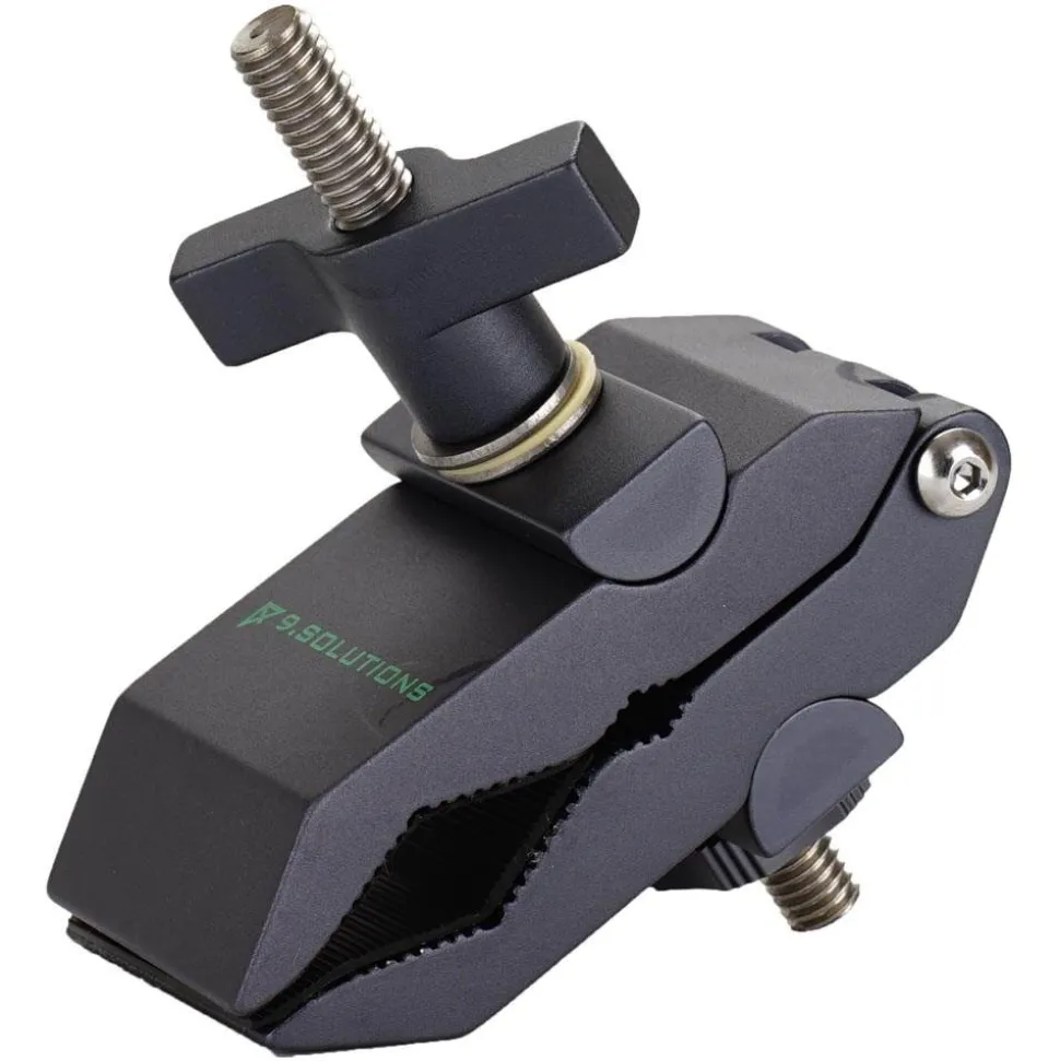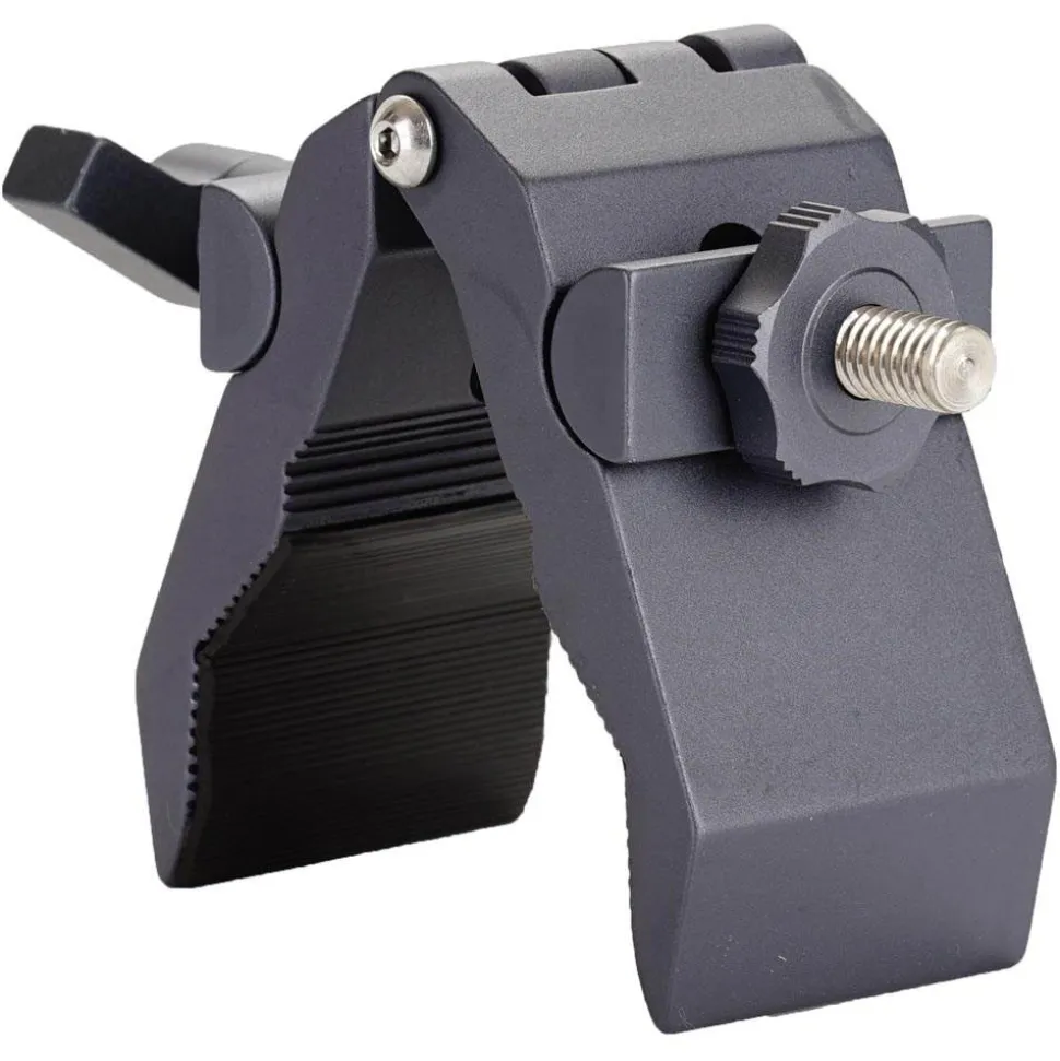 There is more to the Python Clamp than meets the eye. It can be adapted for use with many different accessories used in photo, video, stage, and visual merchandising. Some examples of use are: Photo and Video: It can be used in a combination with a grip head, where by replacing the grip head’s two discs and replacing with the Python Clamp, the grip head is then able to clamp onto odd shaped objects and tubes up to 50mm. Stage: It can be used in combination with a truss coupler to attach truss structures to regular building materials such as wood boards. It can also be used together with an adapter to hang lighting fixtures on a greater range of different mounting shapes. Visual Merchandising: It can be used in combination with any 10mm rods to form shelves, hangers, or holders of any kind. The Python Clamp with 3/8” Male Thread has a 3/8”-16 threaded screw for mounting female threaded equipment like quick release plates, tripod heads, cheeseplates, and other 3/8” female threaded gear. The 3/8”-16 threaded screw is fixed and is independent from the tightening mechanism of the clamp. All Python Clamps can have their center bolts removed, allowing use with any 3/8”-16 (10mm) threaded equipment.