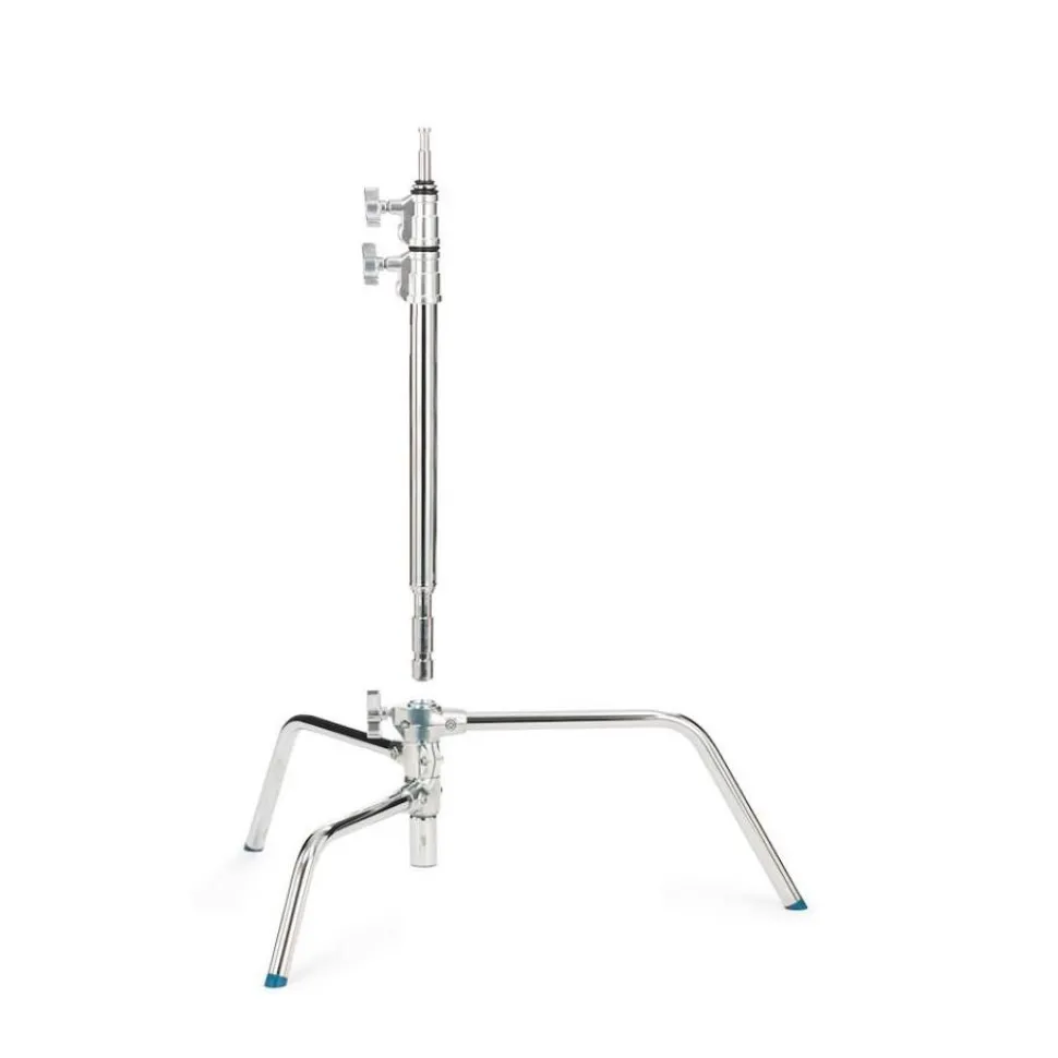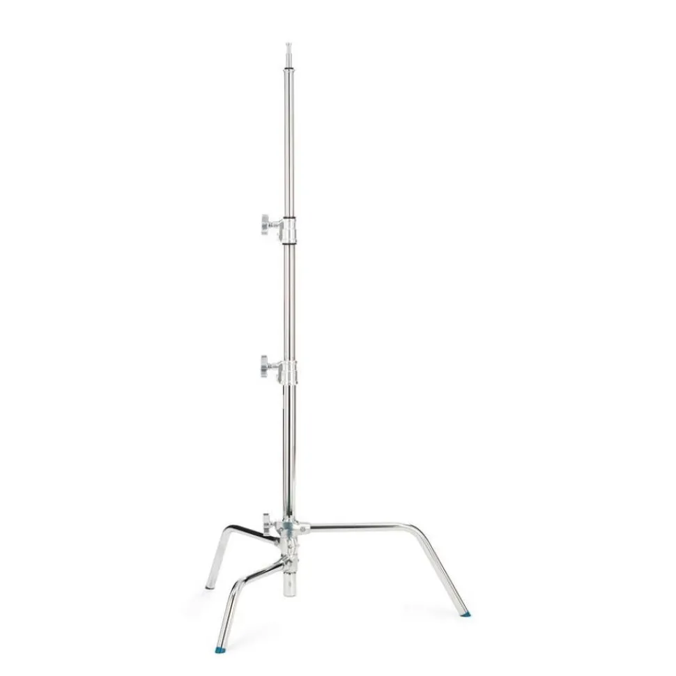 - 20” short Turtle Base C-Stand in silver chrome steel