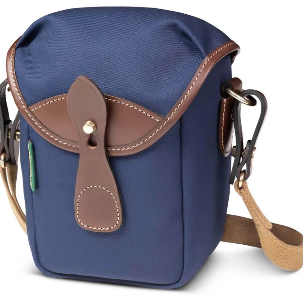Joining other colours in the range is this latest Billingham 72 Shoulder Bag in Navy/Chocolate leather. It is one of the most compact  fitting a compact, rangefinder or mirrorless camera with one lens securely and comfortably. As with all of Billingham models this is made in England, comes with a five year guarantee and oozes style with signatory leather and solid brass details throughout.